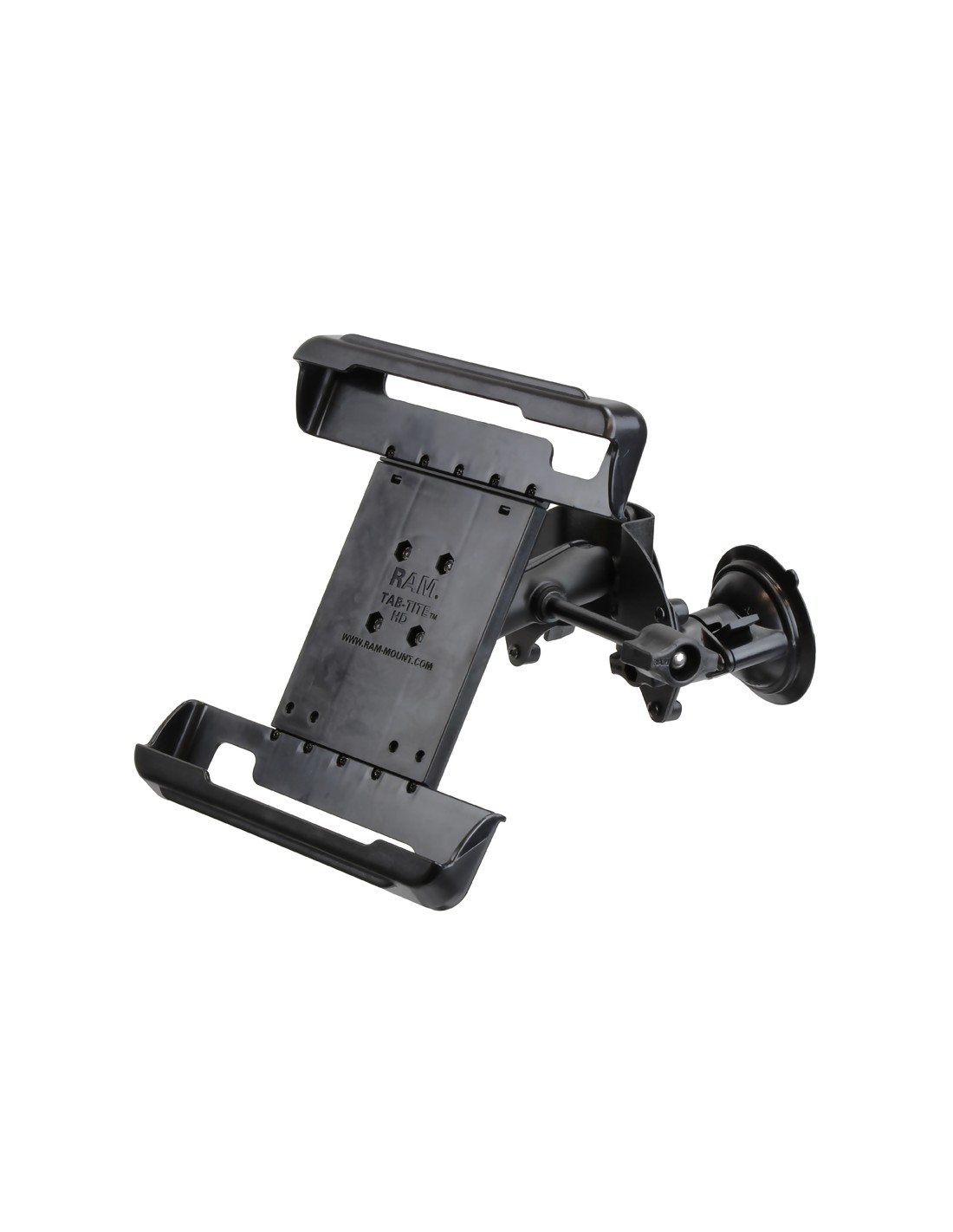 The RAM-B-189-PIV1-TAB10-ALA1_KRU consists of a dual articulating 3.3" twist lock suction cup base, double socket arm, and universal Tab-Tite cradle for 10" Tablets. The dual articulating suction cup base is an amazing innovation in suction cup mounting. With the ability to independently articulate each suction cup, this mounting base can be used in a variety of applications such as curved windows and surfaces. The Tab-Tite cradle is compatible with any tablet that will fit the dimensions listed below. It is important to verify the dimensions of your tablet when determining the overall size.