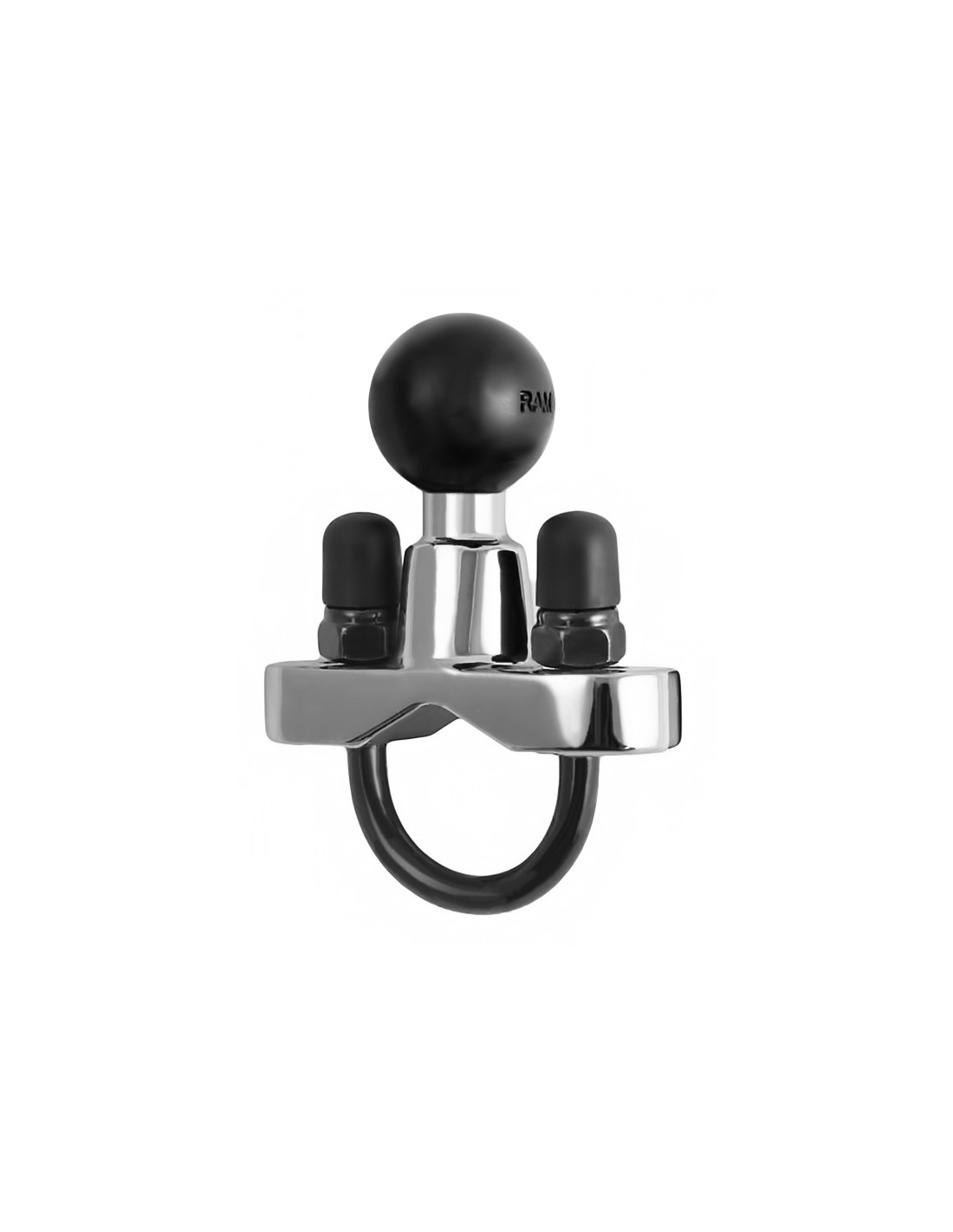 The RAM-B-231CHU consists of a 1" rubber ball designed to sit at right angles to the mounting rail. The rust proof metal u-bolt accommodates rails in diameter from 0.5" to 1.25" in diameter. The base also includes black cover caps to be placed over the exposed ends of the u-bolt.