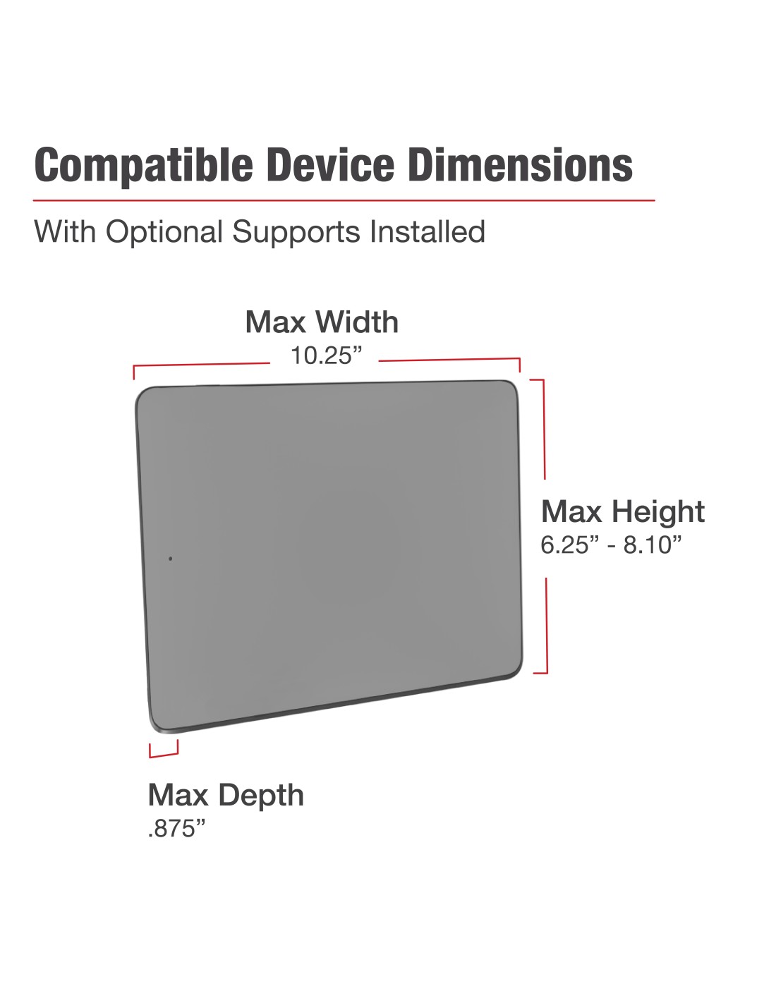 Max Height: 10.25" (using optional supports)