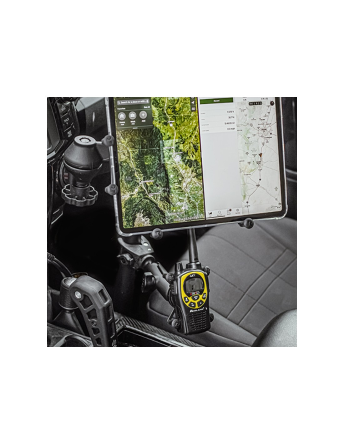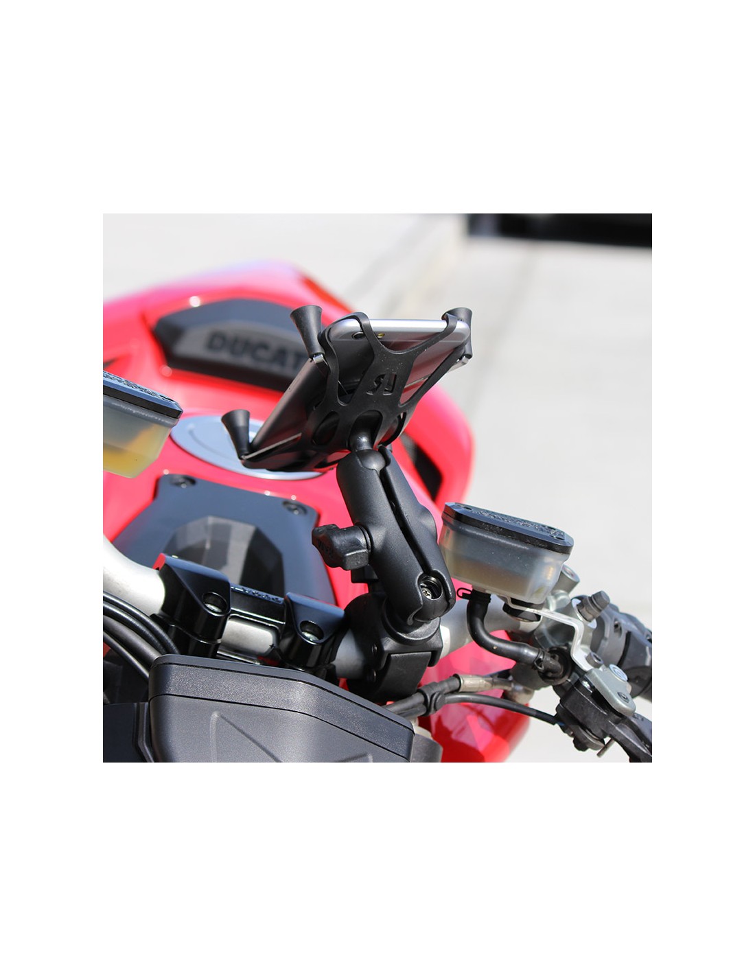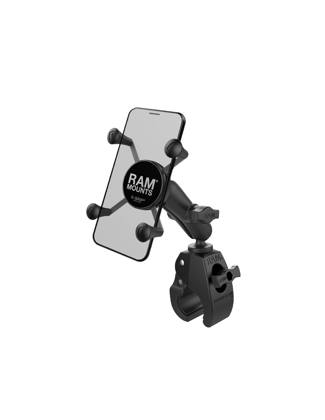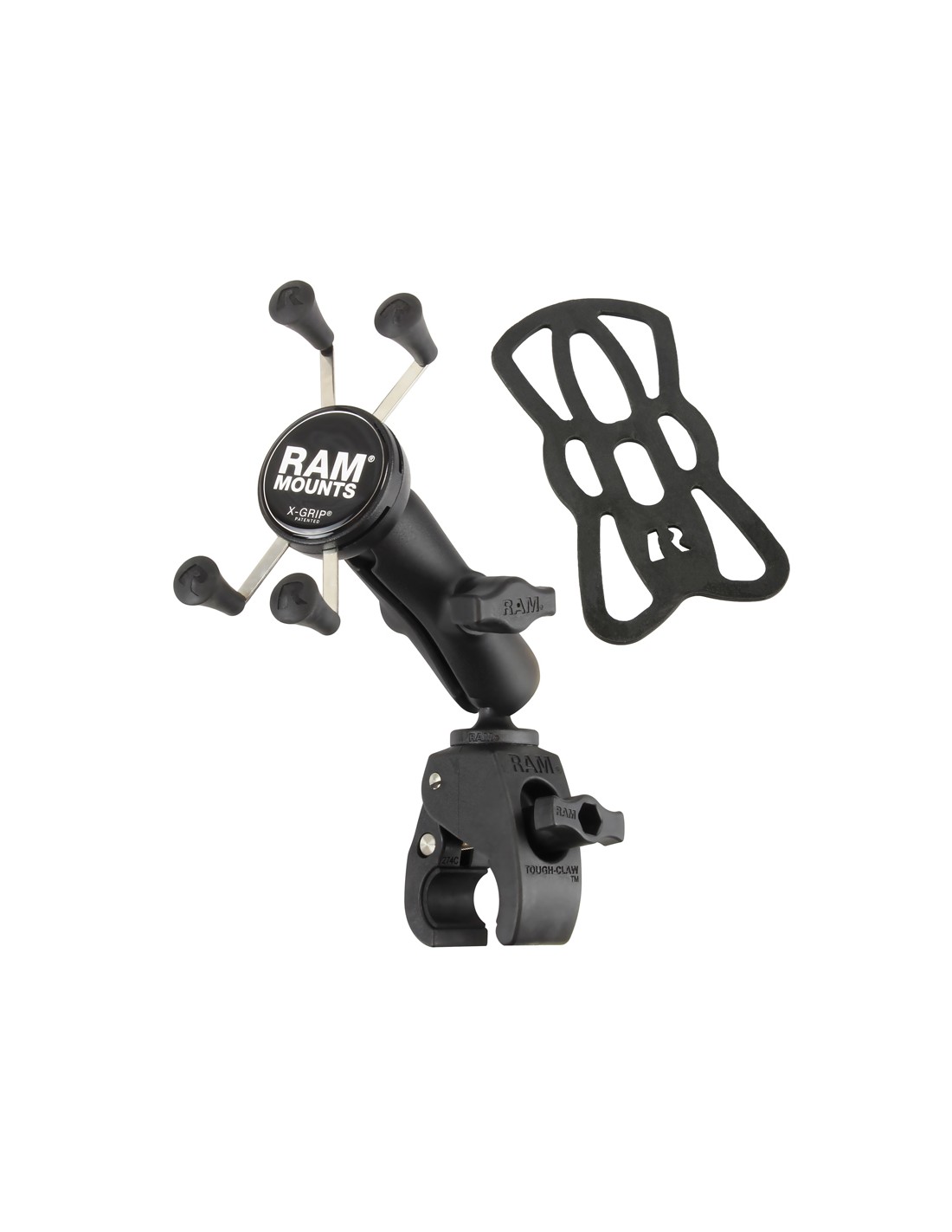 The RAM Tough-Claw is the perfect mounting base for toolless installation and removal on round, square, and odd-shaped rails and bars. The small version of the RAM Tough-Claw includes a B size 1" rubber ball and can quickly be clamped on rails ranging from 1.87" to 3.25" in outer diameter ideal for mounting mounting on the yoke of an aircraft, handlebars of bicycles and motorcycles, or even on kayak rails and roll bars. This kit includes a medium length double socket arm and the popular spring-loaded RAM X-Grip phone holder, featuring an 'X' design that expands and contracts to provide a perfect fit for your device even if it's in a case. The standard size version of the RAM X-Grip fits phones ranging from 1.75" to 4.5" in width and keeps your device completely functional and accessible. For outdoor applications, the RAM X-Grip includes a device tether that is recommended for added security and peace of mind.