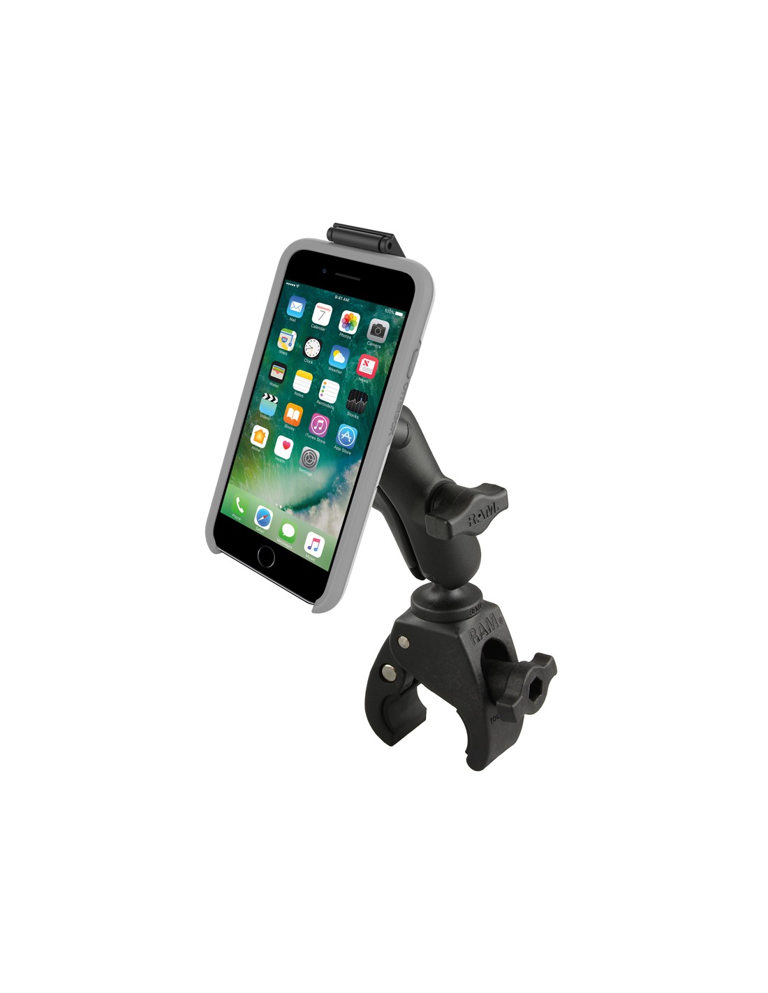 The RAM Tough-Claw is the ideal solution for mounting your OtterBox uniVERSE-protected iPhone or Samsung Galaxy S7/S8 to seat posts, handlebars and more. Without the need for any tools, this ball and socket mounting system offers vibration reduction and the ability to easily adjust for the perfect viewing angle. Combining protection and versatility, the RAM Tough-Claw can clamp onto round, square and odd-shaped rails and bars while fitting all OtterBox uniVERSE phone cases.