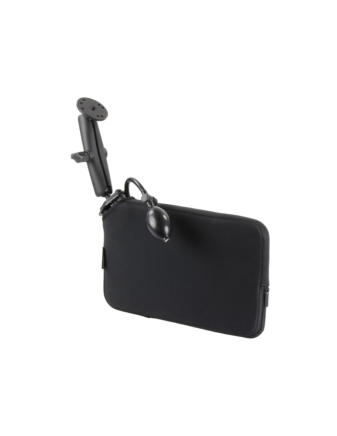 The RAM-B-407-C-202-PUMPU consists of the Tough-Wedge 1" ball diamond base, long double socket arm and round base. The Tough-Wedge is a mount that fits in the gap between the vehicle seat and center console or potentially a center seat. This allows for easy access and operation of a mobile device. The Tough-Wedge can also be used for back-seat applications by inserted into the pockets located on the back of the front seats. The mount is designed with a RAM 1" diameter patented rubber ball and socket system that has adjustment points at both ends of the double socket arm. The long length double socket arm measures 6" and will connect to all RAM cradles/adapters with a 1" ball. The 2.5" round base contains the universal AMPs hole pattern. Included in this kit is an innovative Expansion Pouch accessory for the RAM Tough-Wedge. This optional accessory is designed to increase the stability of your mount by creating a more secure fit of the wedge mount into the gap between seats. The Expansion Pouch fits inside the Tough-Wedge sleeve and is then inflated with the hand pump to the desired level, ensuring your device stays firmly in place.