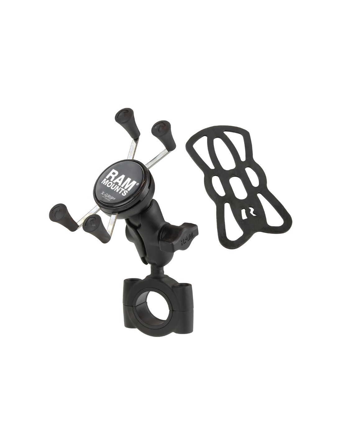 Take your mobile entertainment on the road with the new RAM Torque handlebar and rail mounting base. Weve paired a B-size 1 rubber ball base that accommodates bars 1 1/8" to 1 in diameter with a short length arm and the dynamic X-Grip for phones. Sizing inserts are included to provide a snug fit and offer additional protection for the rail. The mount utilizes nylon-insert lock nuts to prevent loosening in high vibration environments. This low-profile mount is the perfect way to secure your personal electronics and small accessories in any high-vibration environment. The included X-Grip cradle has a clean and clever four leg design that sports great holding power without hiding your phone behind foam pads and plastic. The spring loaded X-Grip cradle expands and contracts, allowing for a perfect custom fit of your cell phone. The perfect complement to the modern sleek interior of today's vehicles, the RAM X-Grip is the cell phone cradle evolved. The X-Grip includes a device tether recommended for outdoor applications. The cradle is compatible with handheld devices that will fit the dimensions listed below. It is important to verify the dimensions of your handheld device with a case/sleeve/skin when determining the overall size.