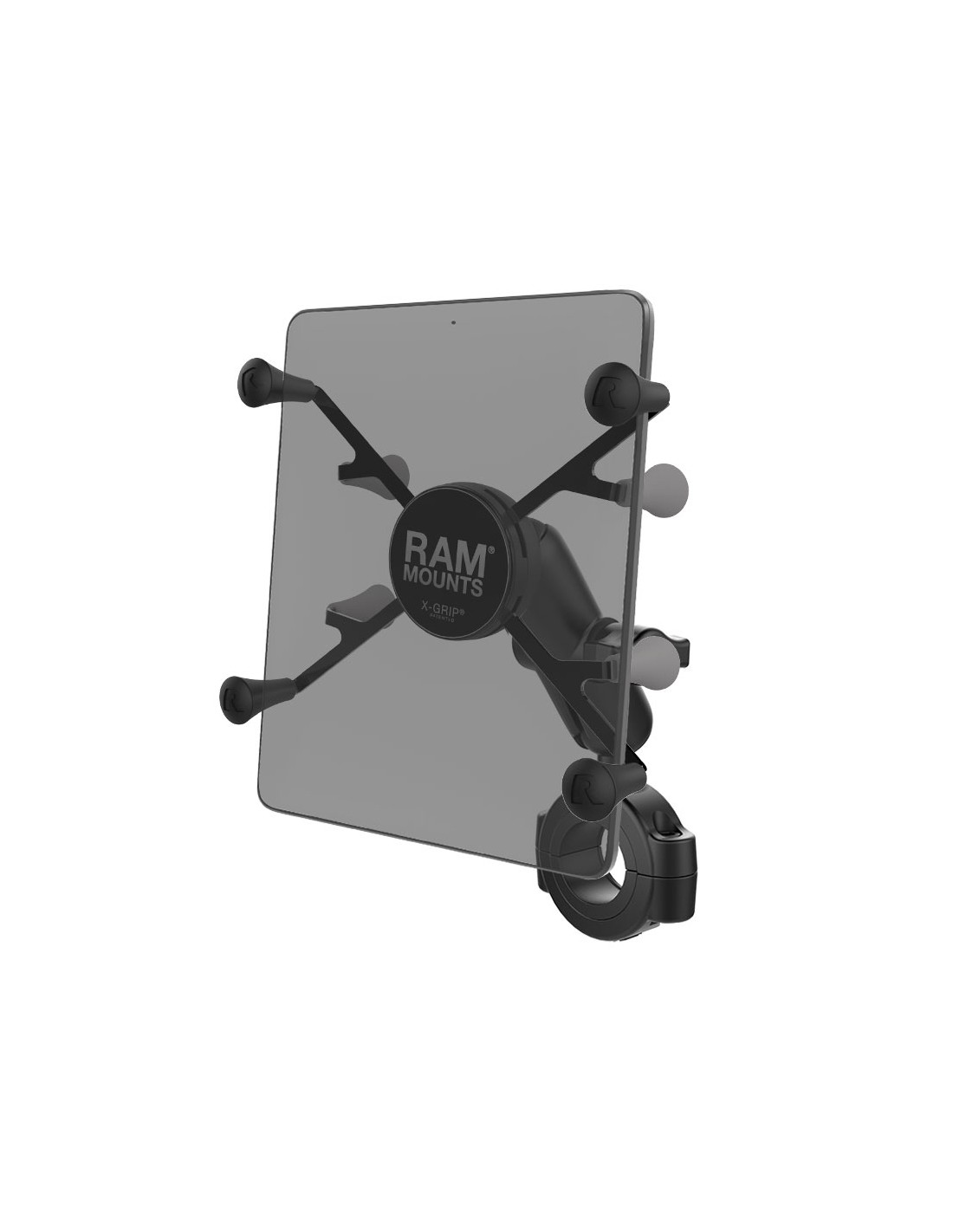 Take your mobile entertainment on the road with the new RAM Torque handlebar and rail mounting base. Weve paired a B-size 1 rubber ball that accommodates bars 1 1/8" to 1 in diameter with a B-size standard length arm and the dynamic X-Grip for 7-8 tablets. Sizing inserts are included to provide a snug fit and offer additional protection for the rail. The mount utilizes nylon-insert lock nuts to prevent loosening in high vibration environments. This low-profile mount is the perfect way to secure your personal electronics and small accessories in any high-vibration environment. The spring loaded X-Grip cradle expands and contracts, allowing for a perfect custom fit of your tablet. Included are extra easy access grip knobs, located on the back of the cradle for quick release of your tablet. The X-Grip includes a device tether recommended for outdoor applications. The cradle is compatible with handheld devices that will fit the dimensions listed below. It is important to verify the dimensions of your handheld device with a case/sleeve/skin when determining the overall size.