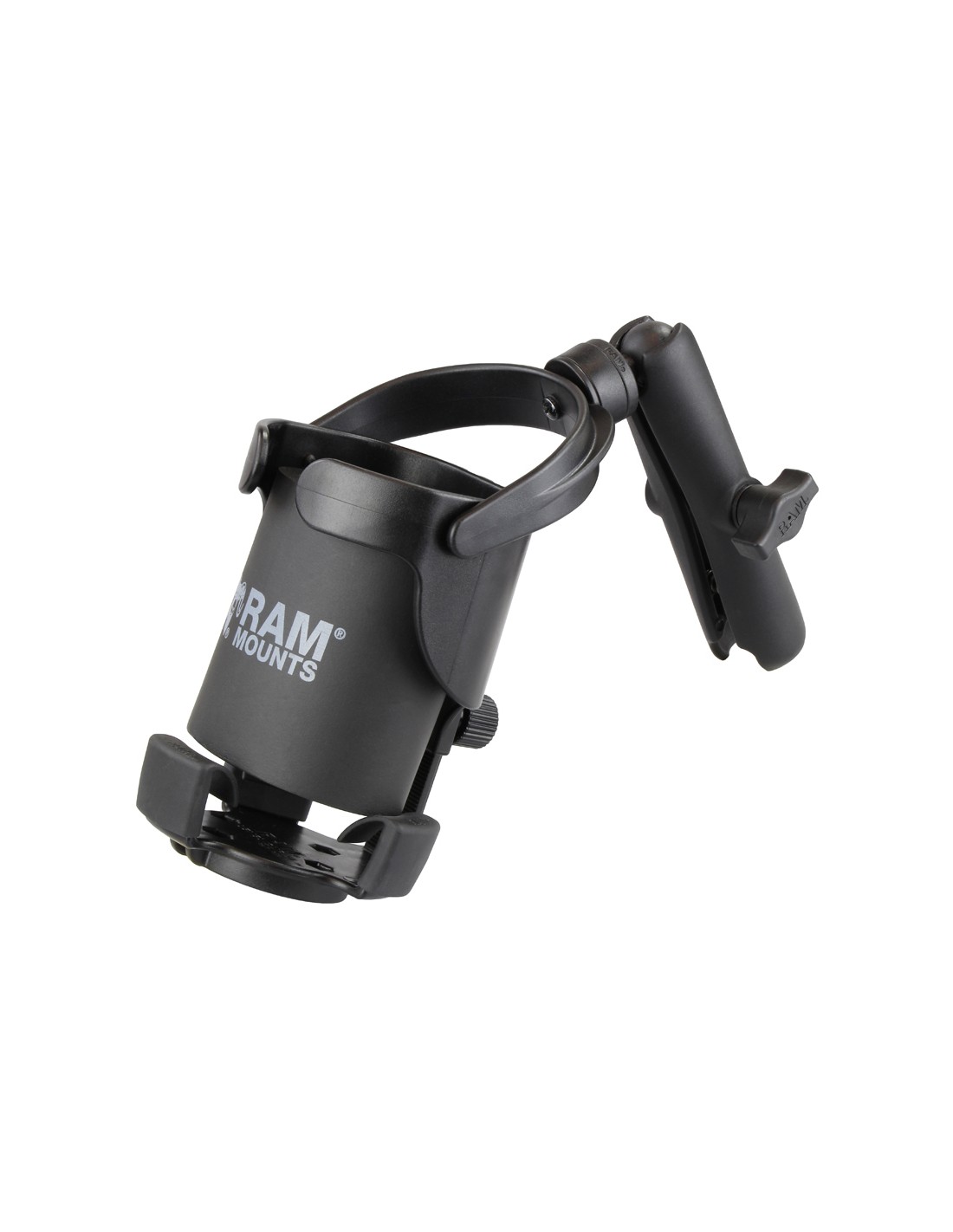 Designed for bigger insulated cups, plastic water bottles or even your reliable steel coffee cup, the Level Cup XL features a gyroscopic self-leveling system that keeps your drink upright, regardless of the conditions. This kit includes a long arm that can accommodate any B-size mounting base. This gives you the flexibility to put your cup anywhere you need it. The oversized opening cradles the biggest of gulps and the adjustable bottom piece moves up and down to accommodate taller cups. The rubber feet flex to fit various size cups as well. RAM Mounts has refined the self-leveling action to keep your cups full.