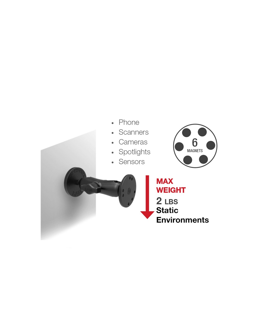 Looking to mount to a metal surface? The RAM Tough-Mag 66mm diameter base is the powerful and durable solution you've been searching for. With a B size ball screwed into a -20 threaded post, simply attach a compatible double socket arm and your desired RAM device holder. This base features an industrial-strength N35 grade magnet and rubber coating that protects the metal surface you're attaching the RAM Tough-Mag to.