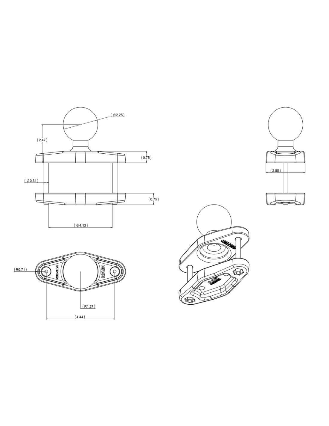 - Included D size 2.25" RAM® rubber ball allows for connection to any D size RAM® double socket arm; ball and socket technology allows for near-infinite adjustability