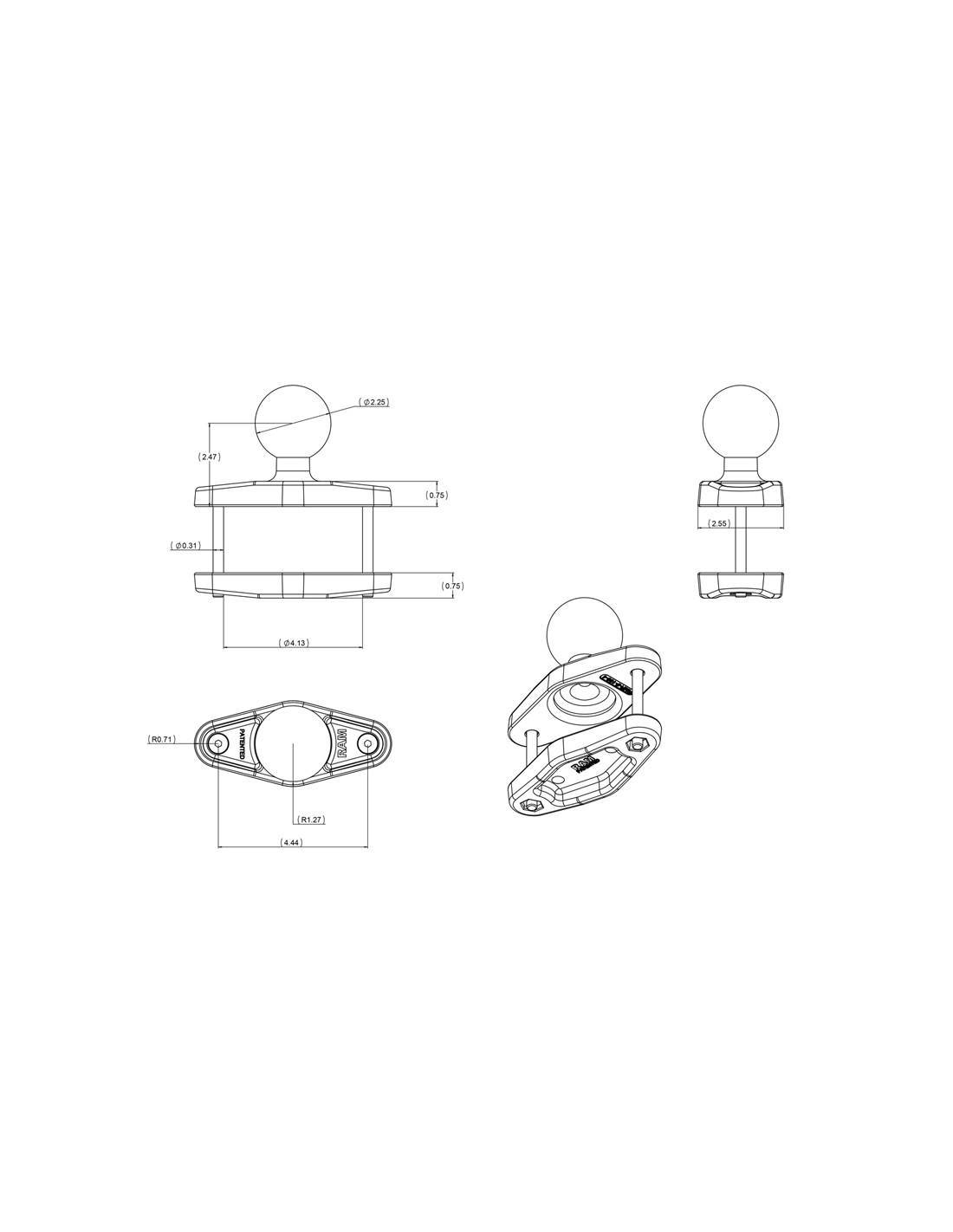 - Included D size 2.25" reinforced RAM® rubber ball allows for connection to any D size RAM® double socket arm; ball and socket technology allows for near-infinite adjustability