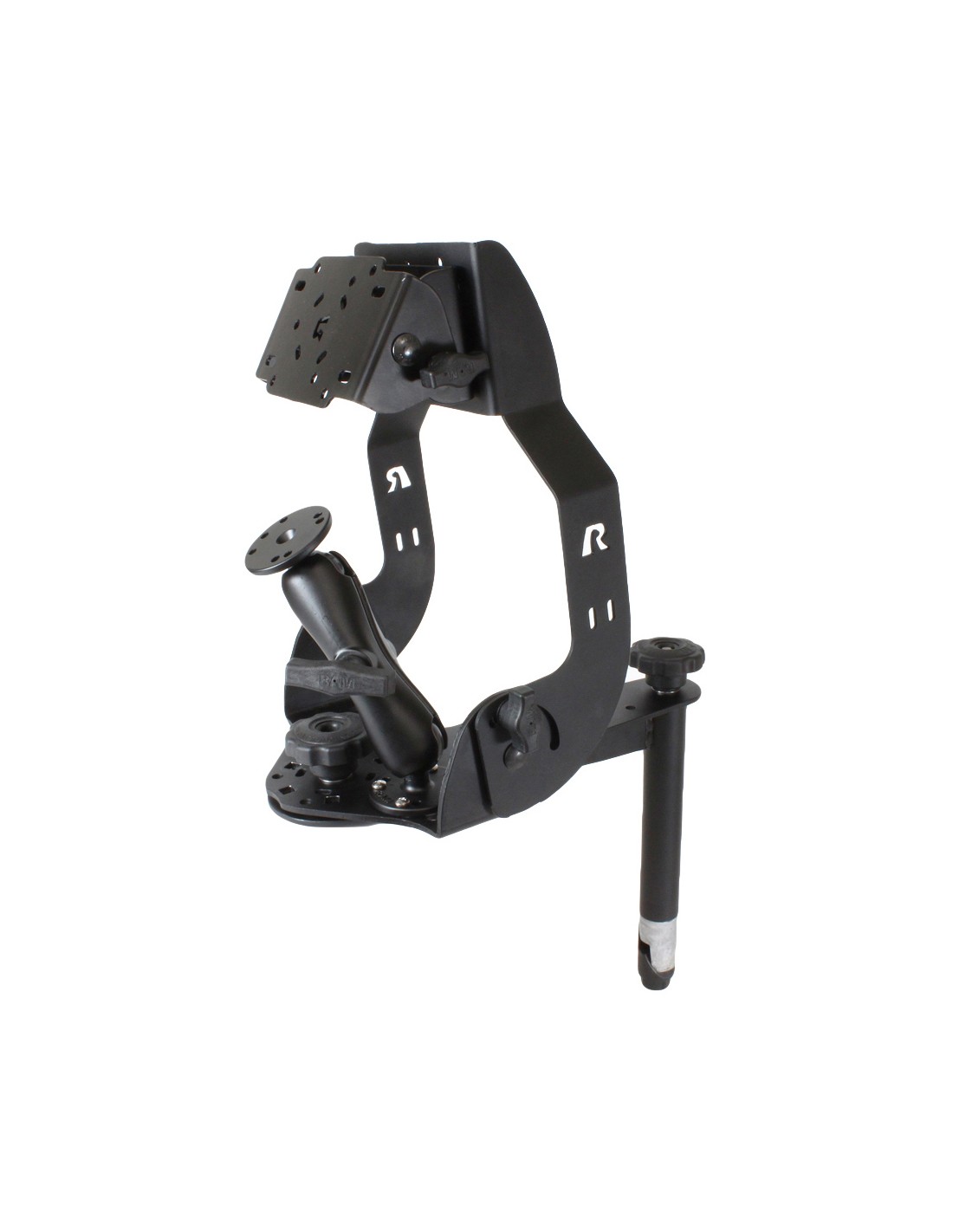 Mobile Data Terminal display mount with 8" flanged upper Tele-Pole and double socket arm mount for RAM vehicle mounting systems. The double socket arm mount contains two 2.5" diameter round bases that have pre-drilled holes, including the universal AMPS hole pattern, which will attach to most keyboards. This mount is also compatible with all RAM lower Tele-Poles and vehicle mounting systems.