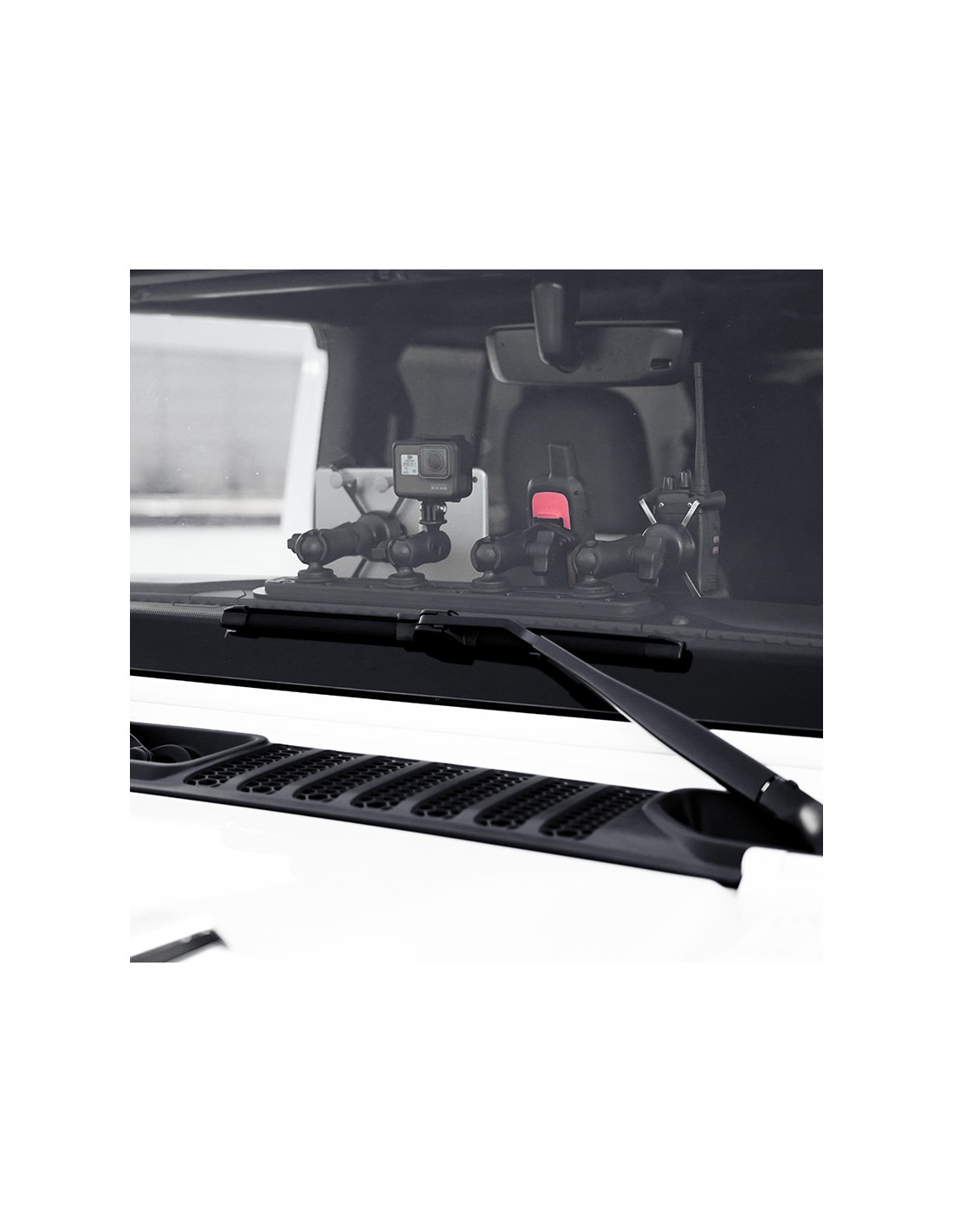 The RAM Tough-Track for the dash of 2018-2023 Jeep JL, JLU, and Gladiator vehicles creates an ideal device setup for overland and off road enthusiasts. Consisting of a dash mounting plate (screws included) and a top-loading composite 12 RAM Tough-Track, easily attach RAM Track Ball components along with double socket arms and device holders for phones, small tablets, GPS units, radios, cameras, and more.