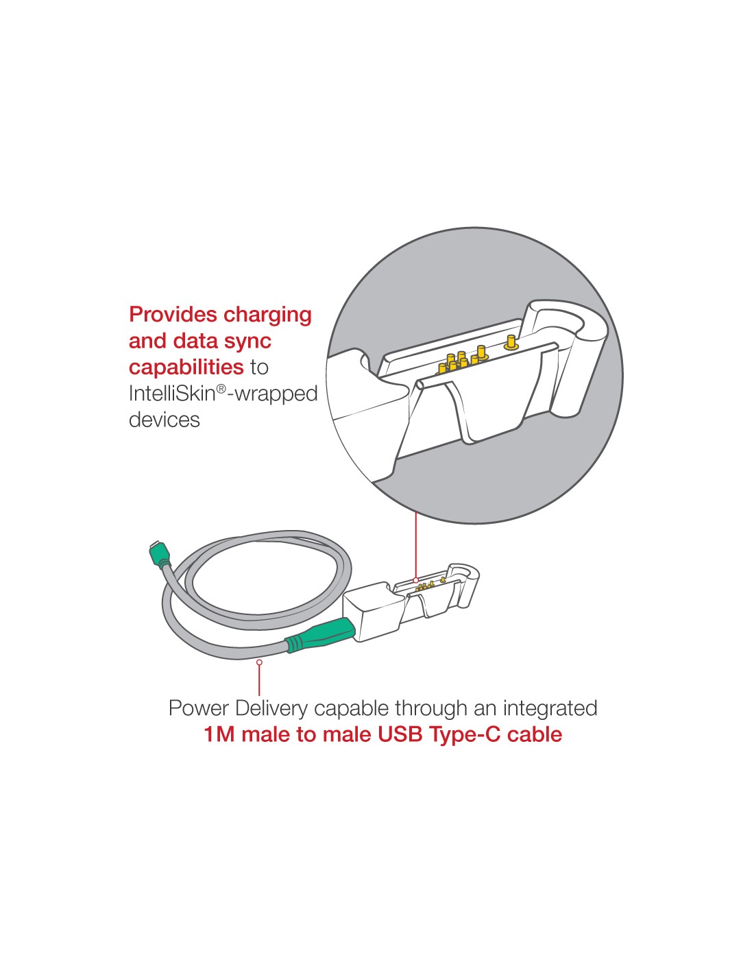 - GDS® connector and docking contacts provide charging and data sync capabilities to IntelliSkin®-wrapped devices