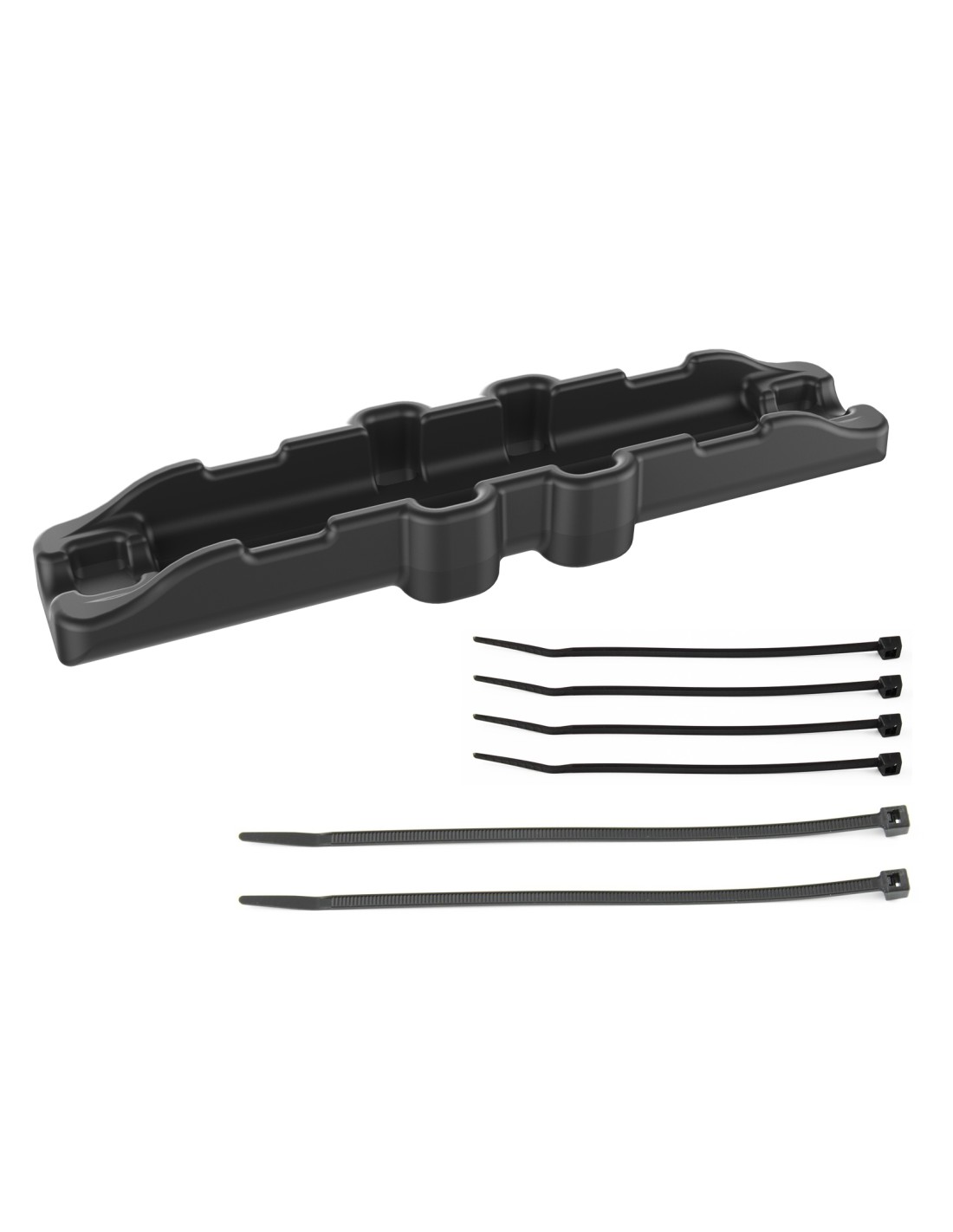 This plastic cable clamp for GDS mUSB and USB Type-C cables secures the connection between the GDS vehicle docks pigtail connector and the GDS charger. Four small zip ties can be attached around the connection to ensure cables cannot be unplugged. Additionally, two long zip ties are included with the clamp for mounting to the back of a GDS Dock or the RAM Tele-Pole for vehicle bases. These long zip ties allow for attachment on rails up to 1.5 in diameter. Always Protected. Always Connected.