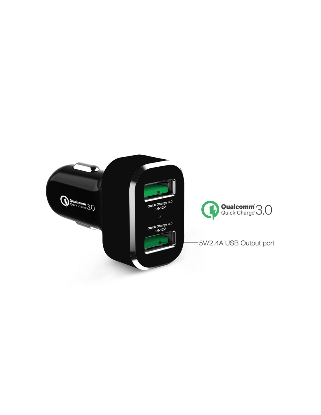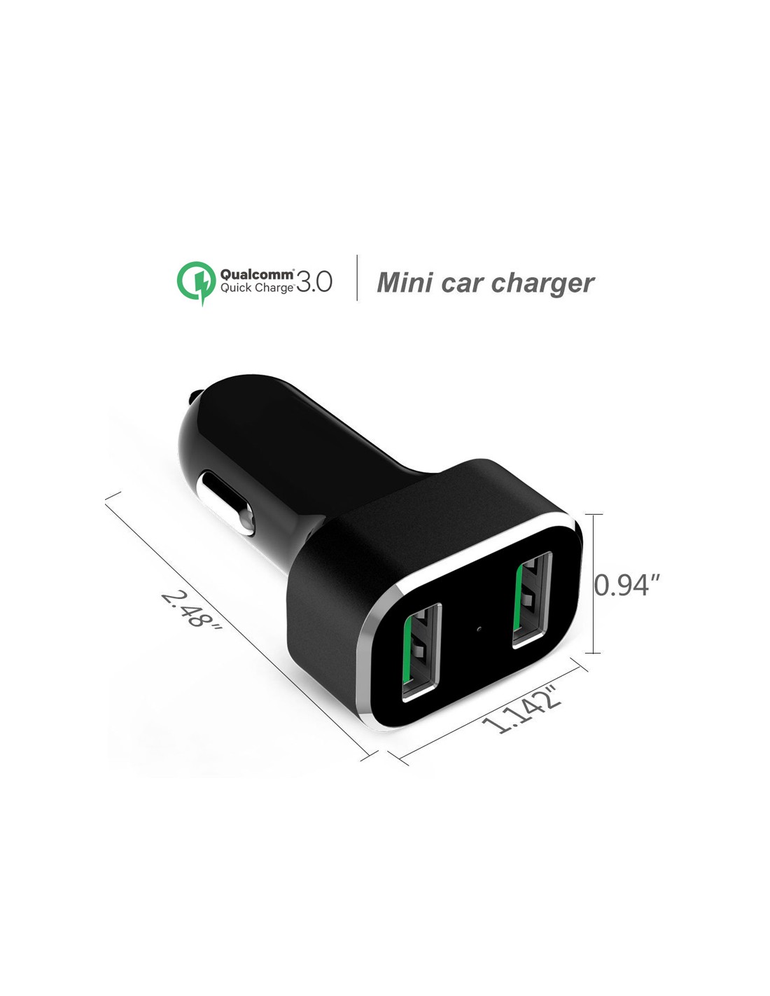 - 2-port USB car charger includes Qualcomm® Quick ChargeT 2.0 and 3.0 for compatible devices