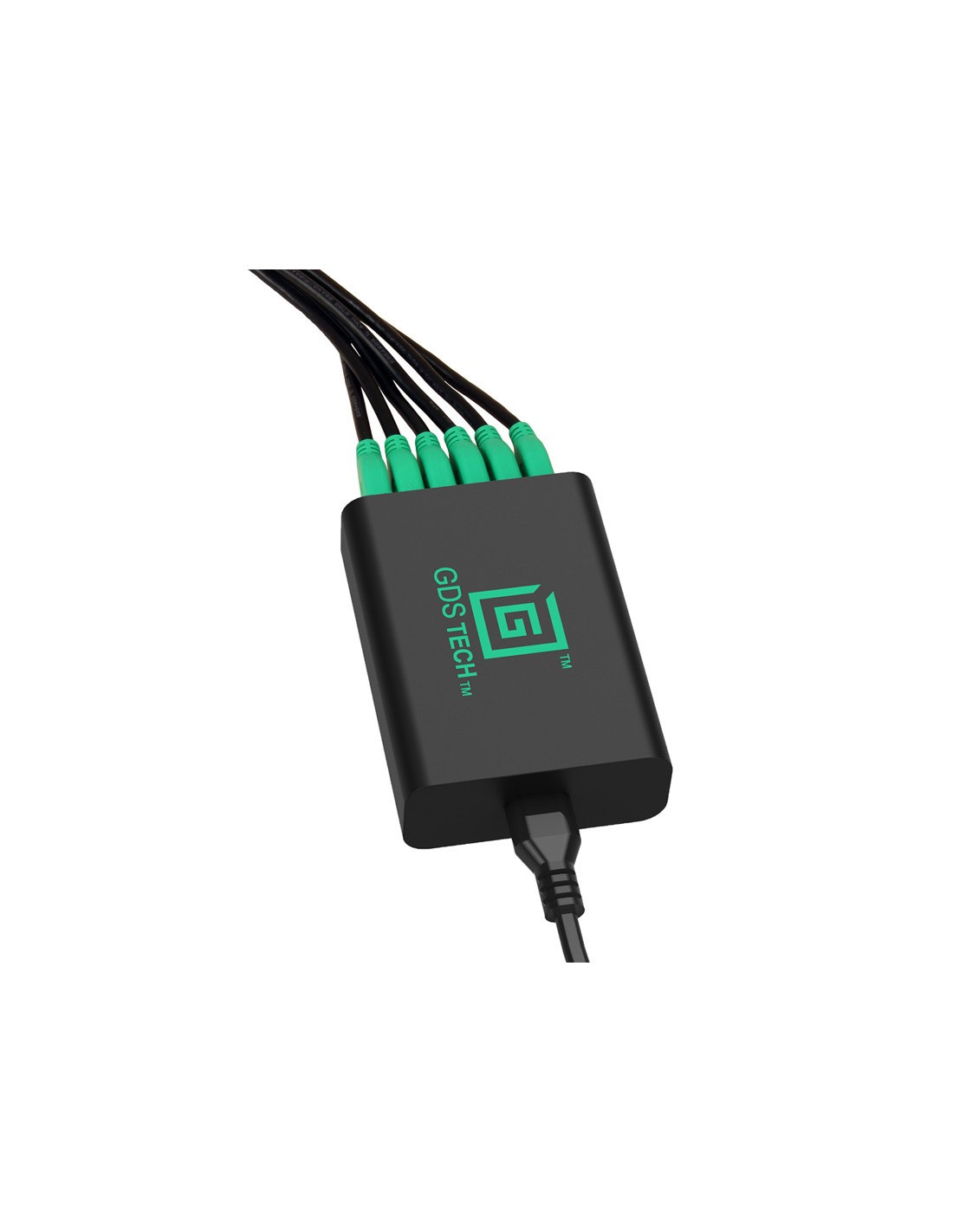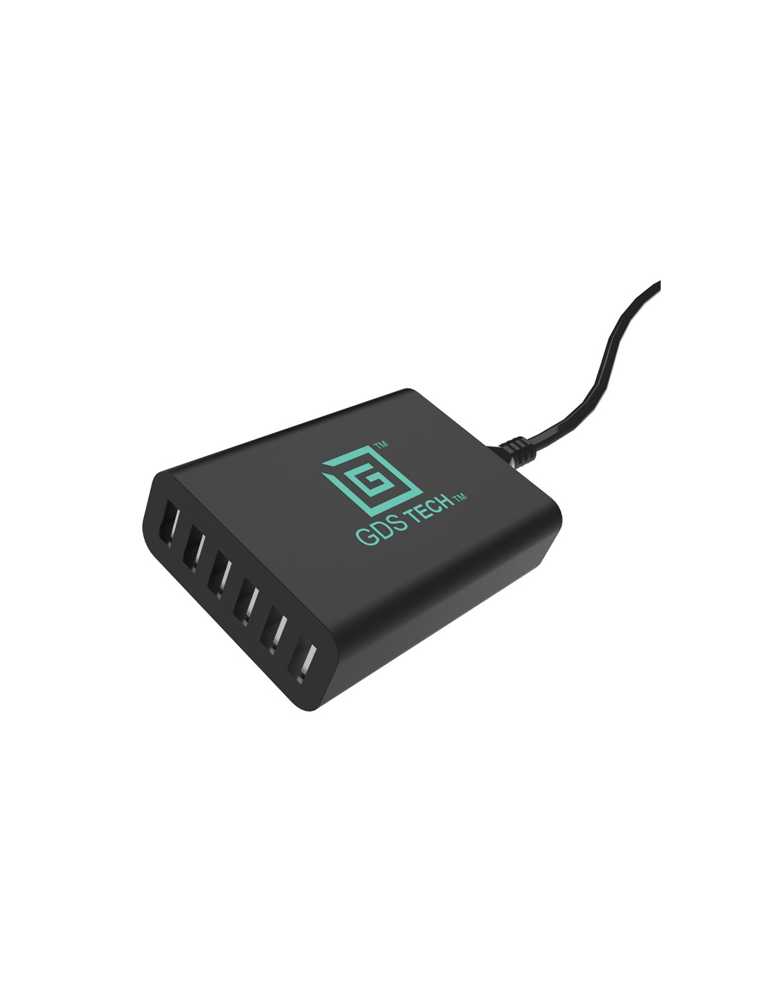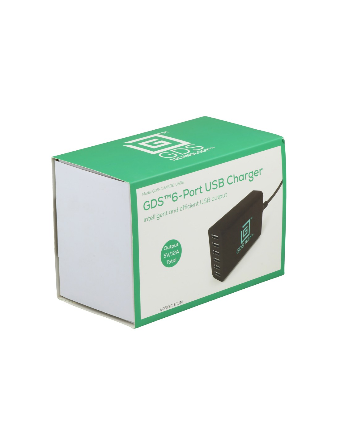 The GDS Intelligent 6-Port USB Charger works with the GDS 6 Gang Desktop Dock to simultaneously charge six unique devices enclosed in IntelliSkin cases. Up to six USB cables connect to the back of the Desktop Dock and plug into the USB Charger. The Charger utilizes one power cord to simplify the charging of multiple devices with one power outlet. USB cables not included. Always Protected. Always Connected.
