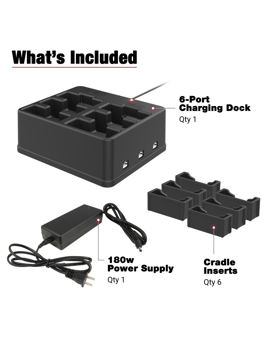 - Charges up to six IntelliSkin®-wrapped handheld devices simultaneously