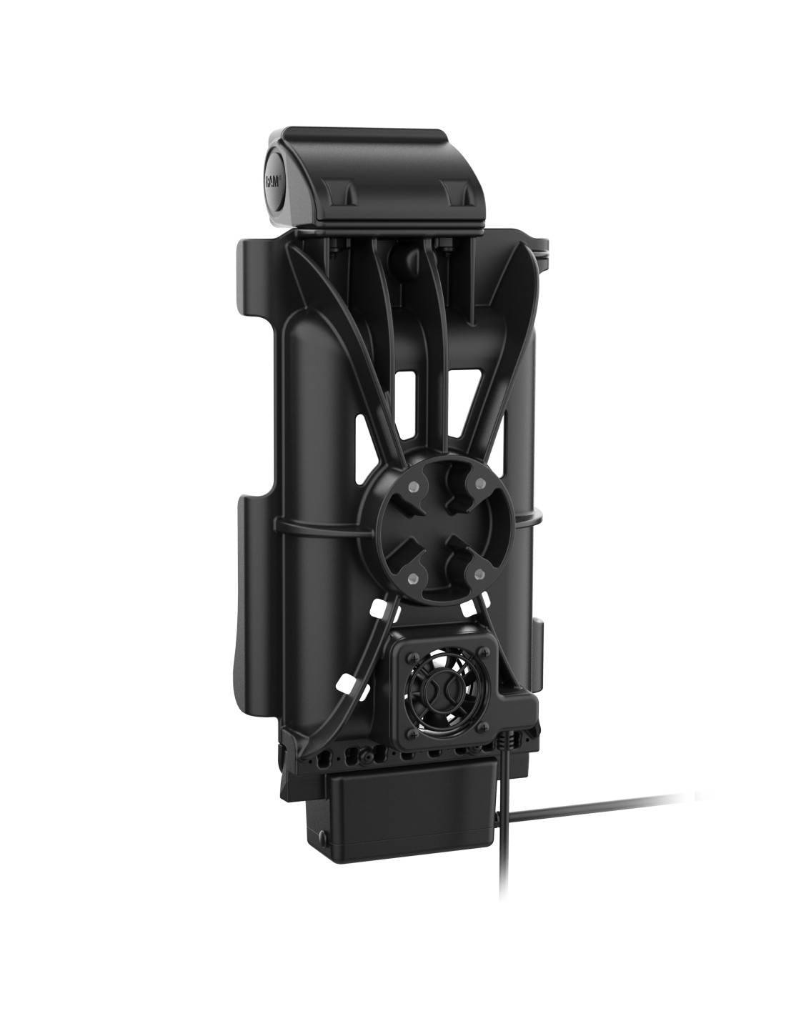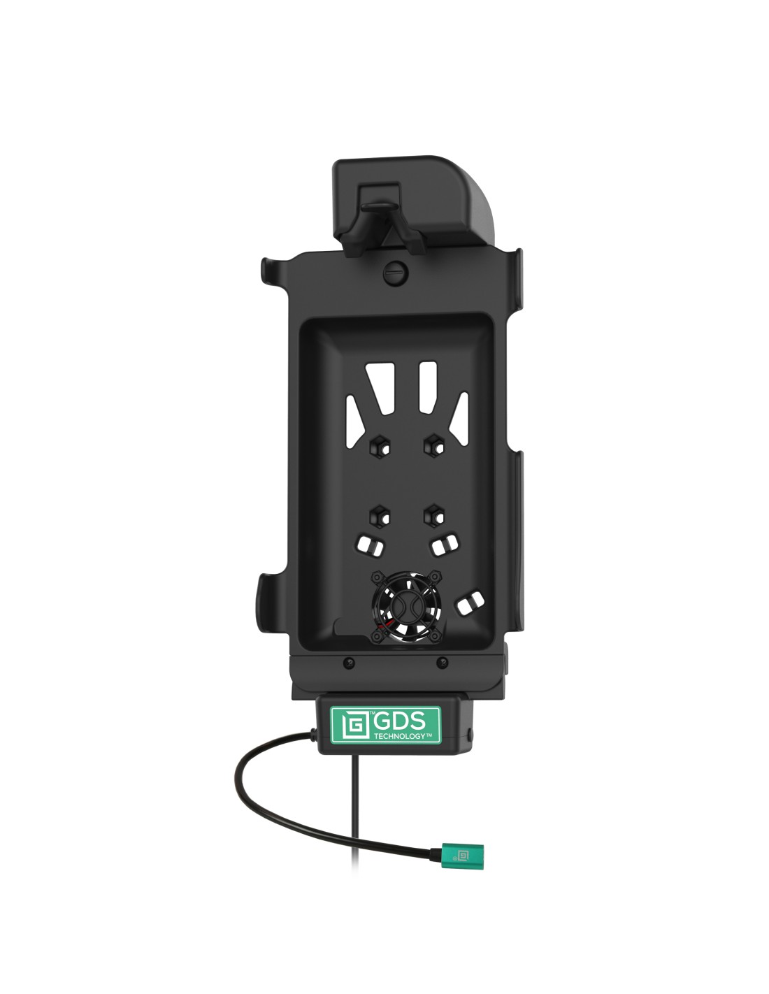 The GDS Cool-Dock is the upgraded version of the GDS Tough-Dock including a built-in 12-VDC Axial cooling fan with a 2.2 meter long hardwire charger. The GDS Cool-Dock is the turnkey vehicle dock in the GDS Tech line of vehicle docks designed to support the Samsung Galaxy Tab Active5, Tab Active3 and 2 in an IntelliSkin Next Gen protective sleeve for your fleet. Using a USB Type-C power connector, the GDS Cool-Dock supports high speed charging capabilities for the Samsung Galaxy Tab Active5, 3 and 2. The GDS Cool-Dock is compatible with RAM ball and socket systems and requires a 4-hole AMPS pattern ball adapter. The GDS Cool-Dock is backed by a 3-year warranty. Get the Heat Out! with GDS Cool-Dock. Always Protected. Always Connected.