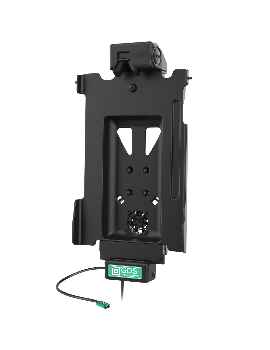 The GDS Cool-Dock is the upgraded version of the GDS Tough-Dock including a built-in 12-VDC Axial cooling fan with a 2.2 meter long hardwire charger. The GDS Cool-Dock is the turnkey vehicle dock in the GDS Tech line of vehicle docks designed to support the Samsung Galaxy Tab S9+, S9 FE+, Tab S8+, S7+ 12.4" (SM-T970) in an IntelliSkin Next Gen protective sleeve for your fleet. Using a USB Type-C power connector, the GDS Cool-Dock supports high speed charging capabilities for the Samsung Galaxy Tab S9+, S9 FE+, Tab S8+, S7+ 12.4" (SM-T970) and S7 FE (SM-T736B). The GDS Cool-Dock is compatible with RAM ball and socket systems and requires a 4-hole AMPS pattern ball adapter. The GDS Cool-Dock is backed by a 3-year warranty. Get the Heat Out! with GDS Cool-Dock. Always Protected. Always Connected.