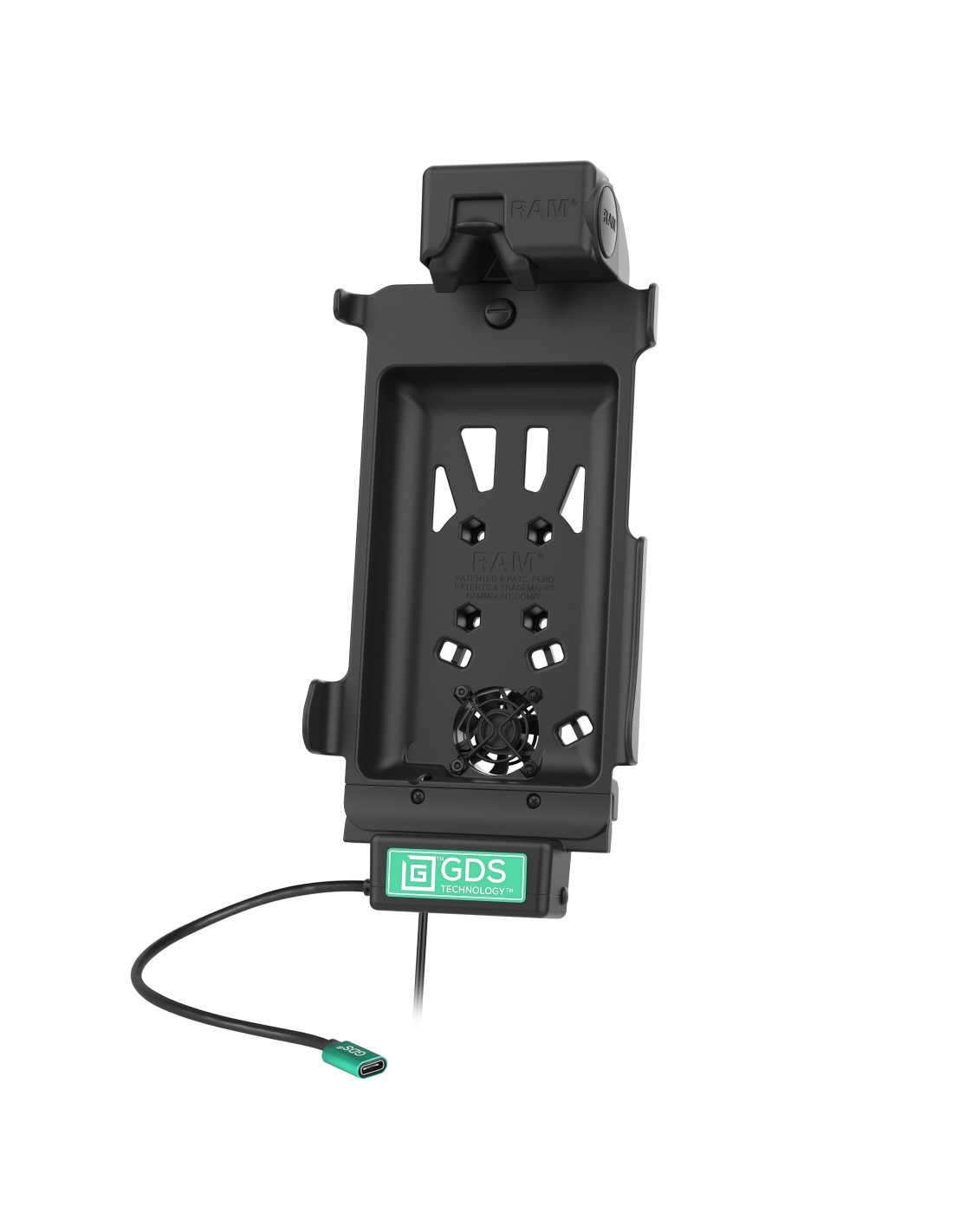 The GDS Cool-Dock is the upgraded version of the GDS Tough-Dock including a key-locking system and a built-in 12-VDC Axial cooling fan with a 2.2 meter long hardwire charge. The GDS Cool-Dock is the turnkey vehicle dock in the GDS Tech line of vehicle docks designed to support the Samsung Galaxy Tab Active5, Tab Active3 and 2 in an IntelliSkin Next Gen protective sleeve for your fleet. Using a USB Type-C power connector, the GDS Cool-Dock supports high speed charging capabilities for the Samsung Galaxy Tab Active5, 3 and 2. The GDS Cool-Dock is compatible with RAM ball and socket systems and requires a 4-hole AMPS pattern ball adapter. The GDS Cool-Dock is backed by a 3-year warranty. Always Protected. Always Connected.