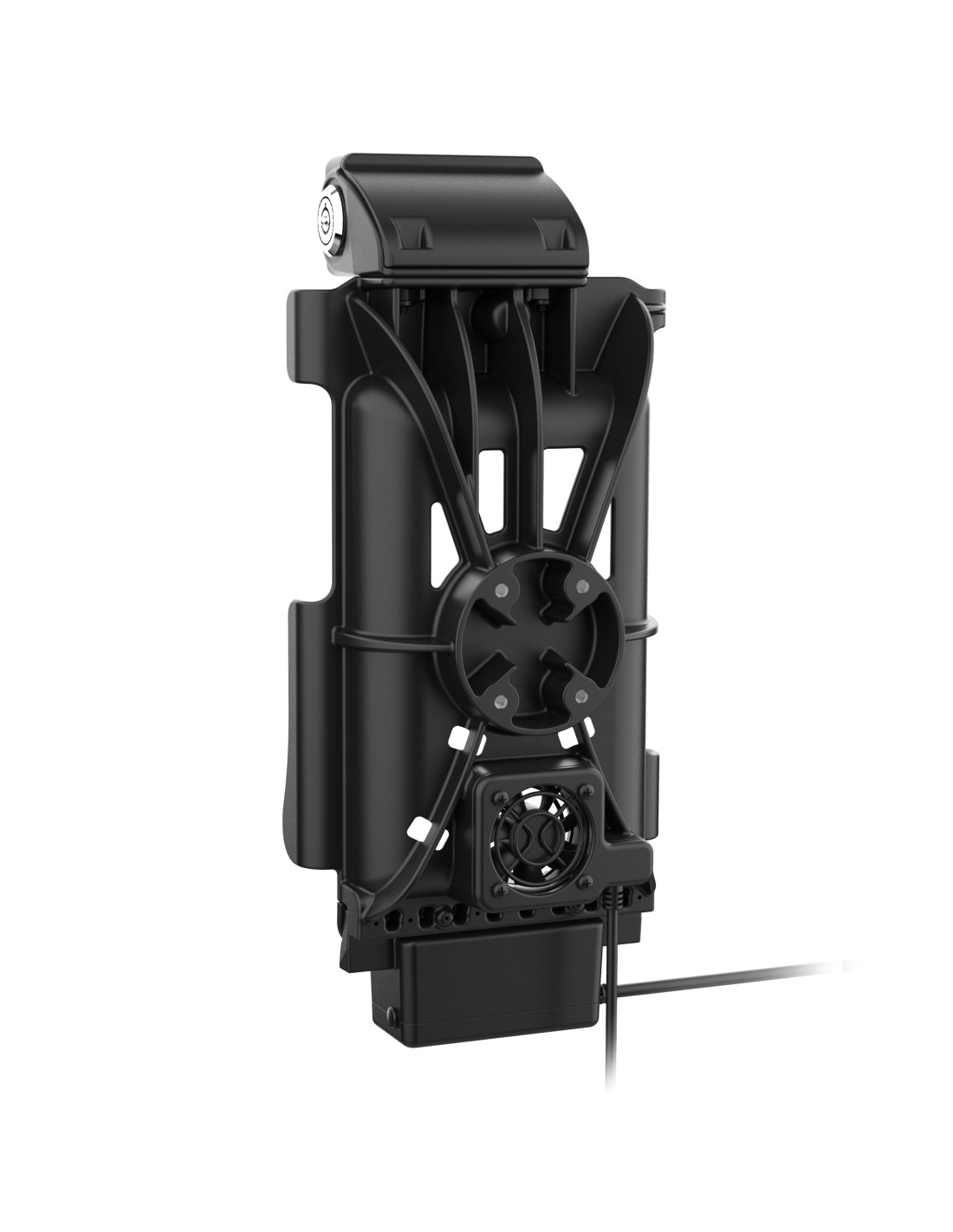 - Spring-loaded key-locking vehicle dock featuring GDS® TechnologyT uses an integrated pogo pin connector to provide high speed charging; Includes built-in 12-VDC Axial cooling fan with 2.2m long hardwire power cable and SAE quick disconnect for hardwire installation