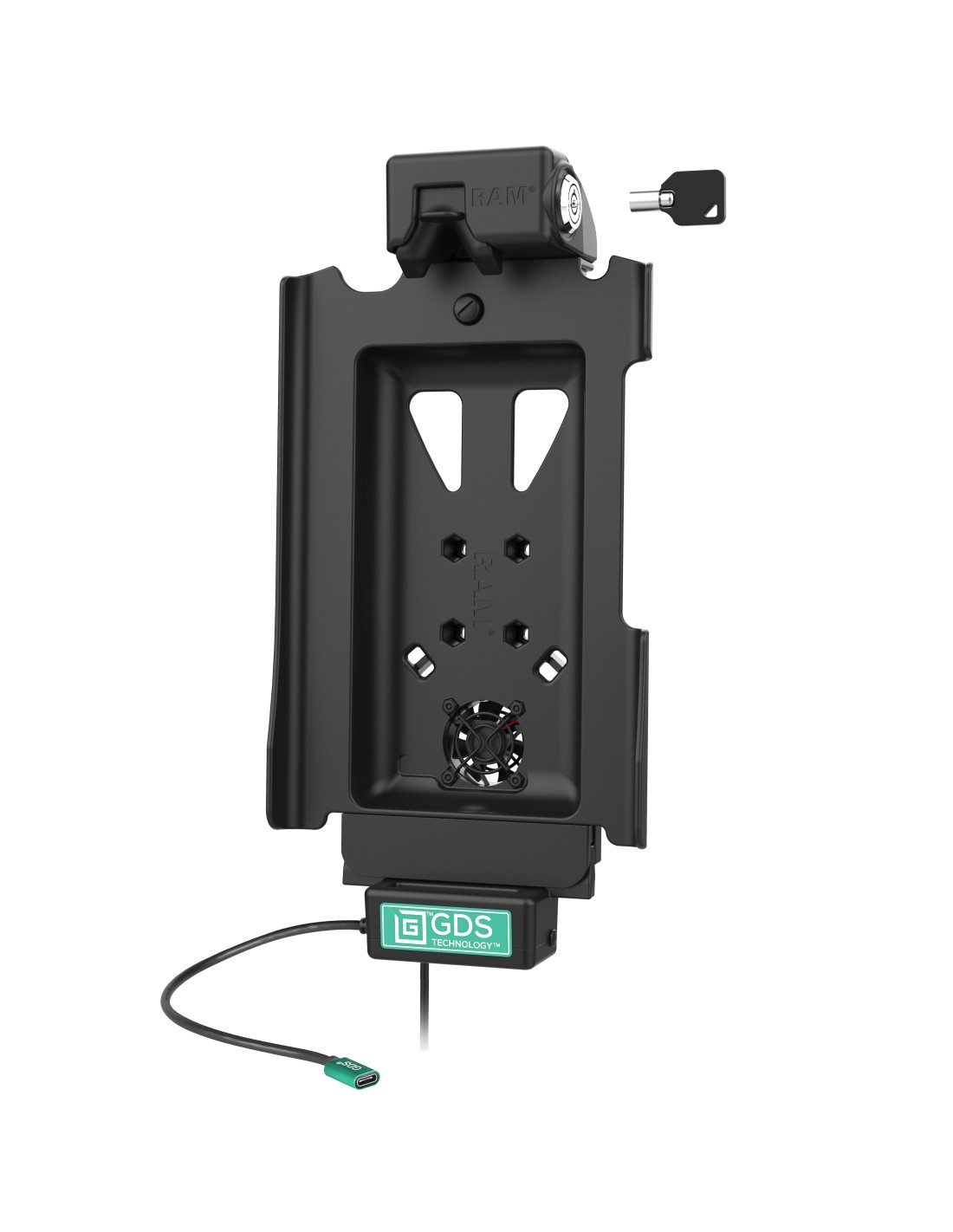 The GDS Cool-Dock is the upgraded version of the GDS Tough-Dock including a built-in 12-VDC Axial cooling fan with a 2.2 meter long hardwire power cord and a keyed locking system. The GDS Cool-Dock is the turnkey vehicle dock in the GDS Tech line of vehicle docks designed to support the Samsung Galaxy Tab A7 10.4 (SM-T500 & SM-T505) in an IntelliSkin Next Gen protective sleeve for your fleet. Using a Type-C power connector, the GDS Cool-Dock supports data syncing and charging capabilities for the Samsung Galaxy Tab A7 10.4 (SM-T500 & SM-T505). The GDS Cool-Dock is compatible with RAM ball and socket systems and requires a 4-hole AMPS pattern ball adapter. The GDS Cool-Dock is backed by a 3-year warranty. Always Protected. Always Connected.