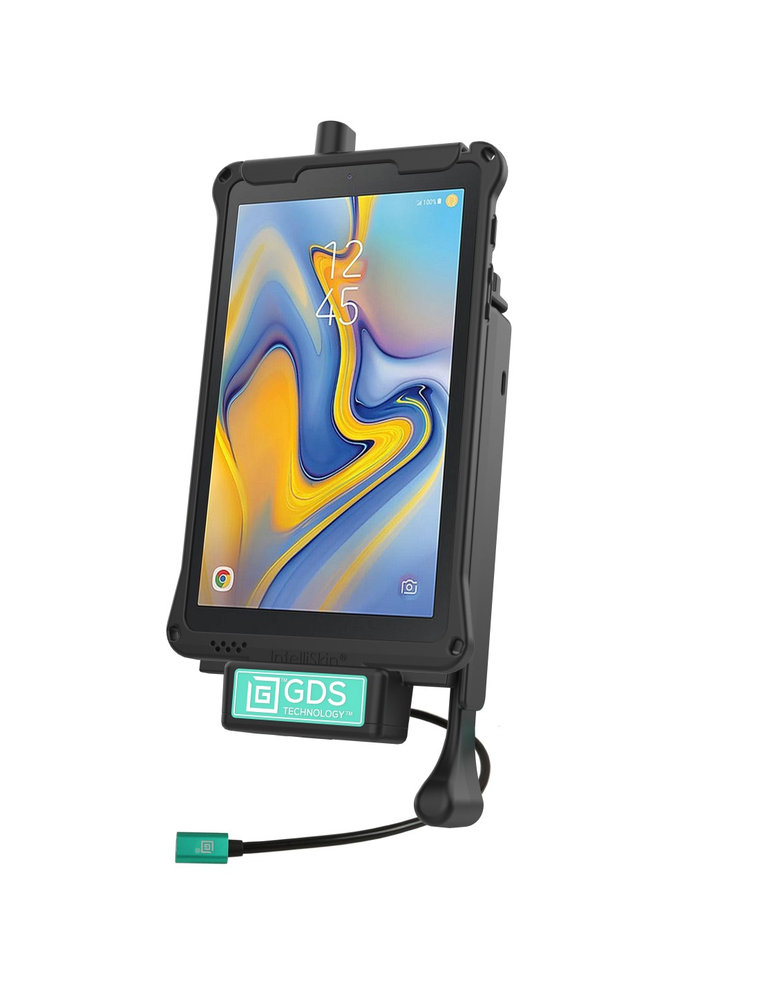 The RAM Locking Vehicle Dock with GDS is a spring-loaded, quick-release cradle with a keyed lock that offers a secure fit with easy access to the mounted tablet. This docking station is compatible with the Samsung Galaxy Tab A 8.0 (2018) SM-T387 with IntelliSkin. The integrated GDS platform enables data sync and charging capabilities. Without the need to remove the IntelliSkin sleeve from the device, users can quickly and efficiently mount the tablet in the vehicle dock while keeping the device charged and locked in place. This dock is designed to meet the demands of field workers in a variety of applications, including transportation, field sales, logistics, manufacturing, and much more. Always Protected. Always Connected.