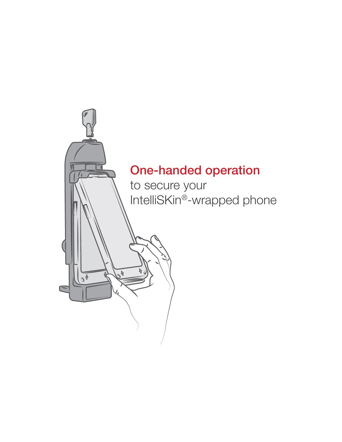 - Adjustable top cup accommodates any size phone wrapped in IntelliSkin®