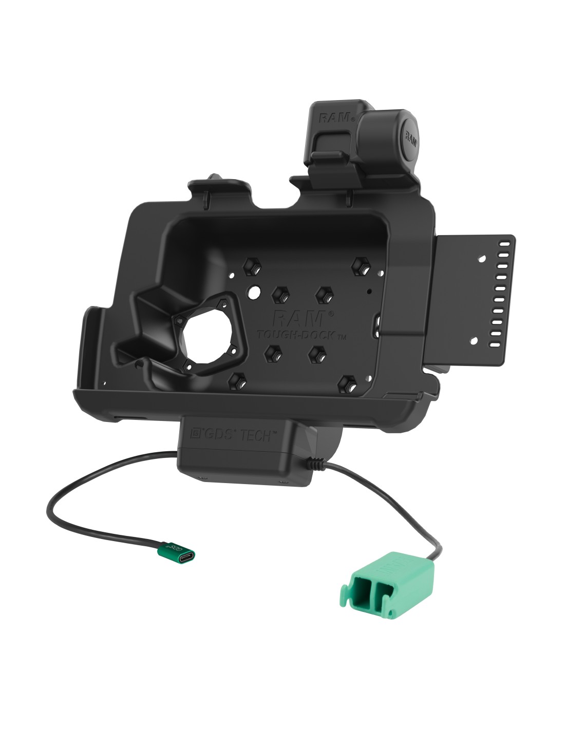 The GDS Power + Dual USB Dock with Latch works with the Zebra ET401, ET40, and ET45 8" enterprise tablets with an IntelliSkin protective sleeve. This dock (RAM-GDS-DOCKNLL-ZE20PD2U) features a top latch design for securing the tablet without wear and tear on the dock itself. Power is provided via a USB Type-C connector and allows you to keep the device charged through the pogo pin contacts when the IntelliSkin-wrapped ET4x 8" is docked. A dual USB Type-A pigtail connector is provided for adding up to two additional input devices. The dock also includes space in the back for tablet add-ons such as the Zebra Expansion Back, PowerPack Battery, and GDS Ergo accessories like the GDS Roto-Mag and GDS Hand-Stand. To mount this dock, pair any C and D size RAM 4-hole AMPS or 75mm x 75mm VESA pattern bases for attaching a double socket arm in order to complete your mounting solution. Take the solution a step further by taking advantage of the GDS Ecosystem and the built-in 2-hole mounting plate compatible with RAM 2-hole diamond base for additional device mounting such as a phone, scanner, printer, or any other handheld device. Always Protected. Always Connected.