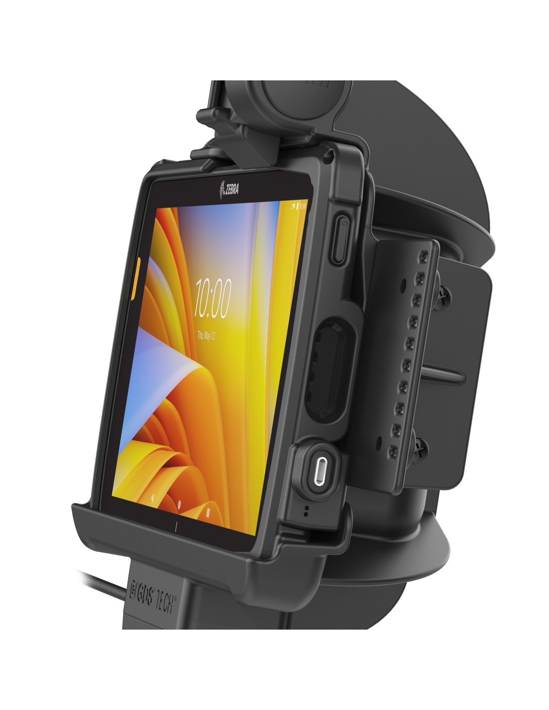 For frequent docking and undocking of the Zebra ET401, ET40, and ET45 8" tablets wrapped in an IntelliSkin protective sleeve, this form-fit GDS vehicle dock (RAM-GDS-DOCKNLL-ZE20PDU) features a top latch design for securing the tablet without wear and tear on the dock itself. Power is provided via a USB Type-C connector and allows you to keep the device charged through the pogo pin contacts when the IntelliSkin-wrapped ET4x 8" is docked. A single USB Type-A pigtail connector is provided for adding one additional input device. The dock also includes space in the back for tablet add-ons such as the Zebra Expansion Back, PowerPack Battery, and GDS Ergo accessories like the GDS Roto-Mag and GDS Hand-Stand. To mount this dock, pair any C and D size RAM 4-hole AMPS or 75mm x 75mm VESA pattern bases for attaching a double socket arm in order to complete your mounting solution. Take the solution a step further by taking advantage of the GDS Ecosystem and the built-in 2-hole mounting plate compatible with RAM 2-hole diamond base for additional device mounting such as a phone, scanner, printer, or any other handheld device. Always Protected. Always Connected.