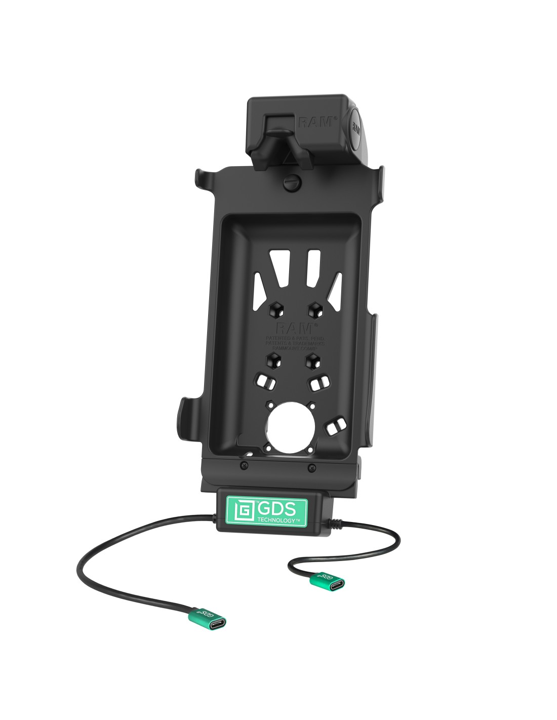 The GDS Tough-Dock + USB-C Data for Samsung Tab Active5, Tab Active3 & 2 (RAM-GDS-DOCK-SAM62C-CU) is a vehicle dock designed to support the Samsung Galaxy Tab Active5, 3 & 2 wrapped in an IntelliSkin Next Gen protective sleeve. Using a USB Type-C power connector, the GDS Tough-Dock supports high speed charging capabilities required by the Samsung devices. It also features an additional USB Type-C connector to support a single peripheral device. The USB Type-C connection works seamlessly with RAM RSM or 3rd party microphones to enable push-to-talk (PTT) over-cellular capabilities. The GDS Tough-Dock is compatible with B or C size RAM ball and socket systems and requires a 4-hole AMPS pattern ball adapter. The GDS Tough-Dock is backed by a 3-year warranty. Always Protected. Always Connected.