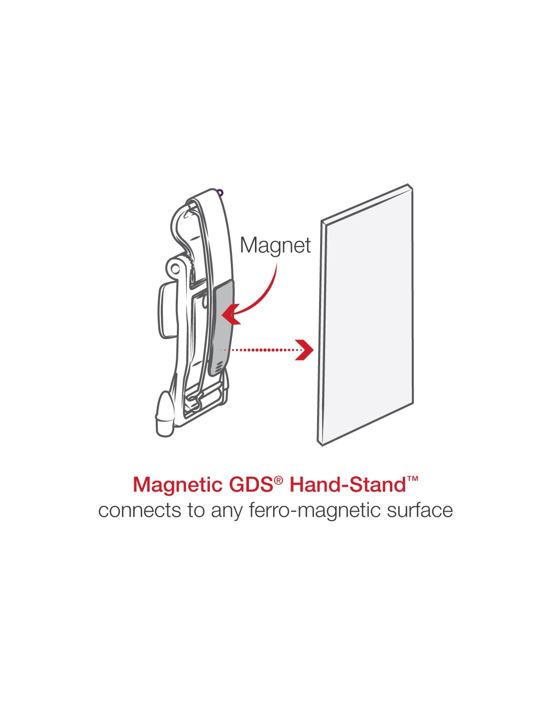 The magnetic version of the GDS Hand-Stand tablet hand strap and kickstand is a perfect accessory for enabling your tablet device for field use, and is compatible with any IntelliSkin sleeve that features the unique circular interface as an attachment point. With the magnetic strap, easily secure your device to a number of metal surfaces. The GDS Hand-Stand is specifically designed for the enterprise customer, while being an ideal solution for consumers alike. Its unique design integrates a comfortable hand strap thats compatible with a gloved hand, while also featuring the ability to be rotated 360 degrees to for an ideal viewing angle. In addition, an integrated kickstand allows for positioning the tablet on a flat surface for on the go operation of your tablet. Always Protected. Always Connected.