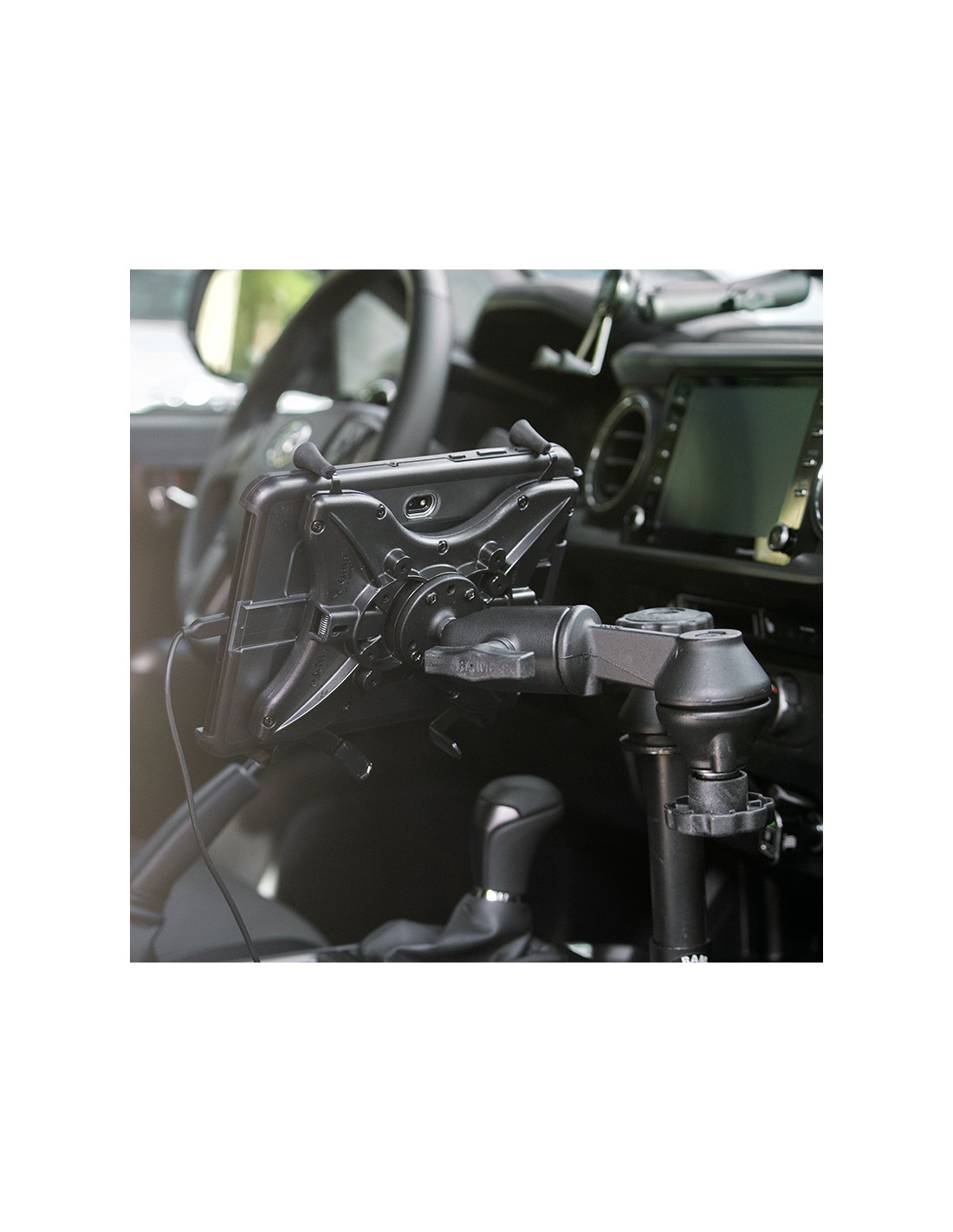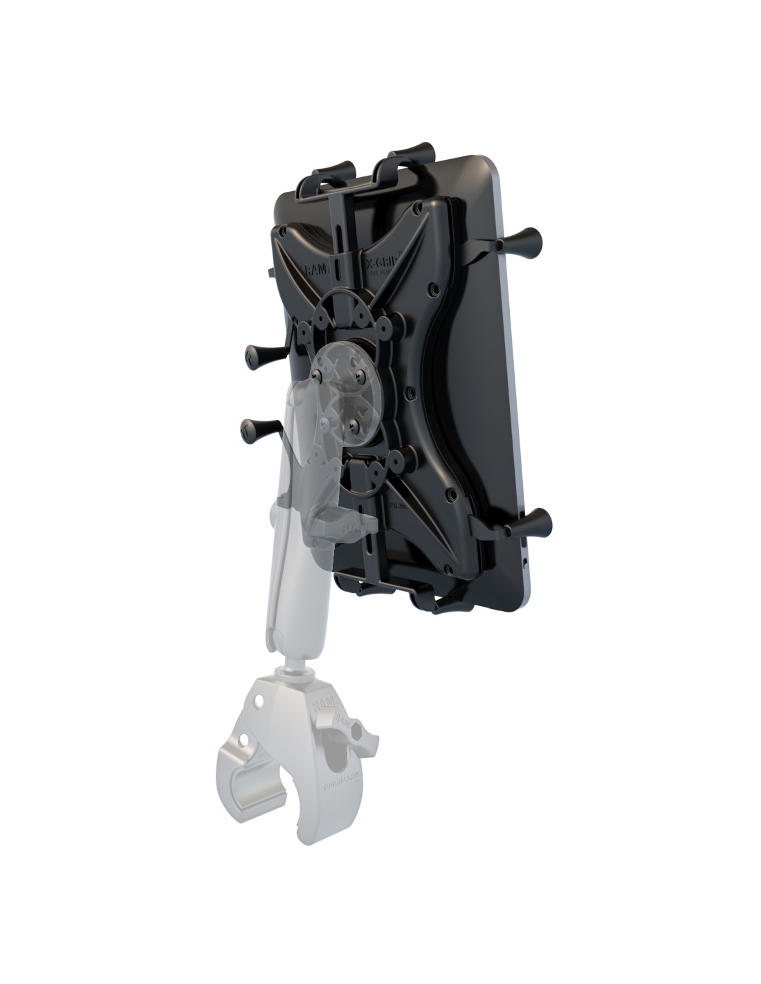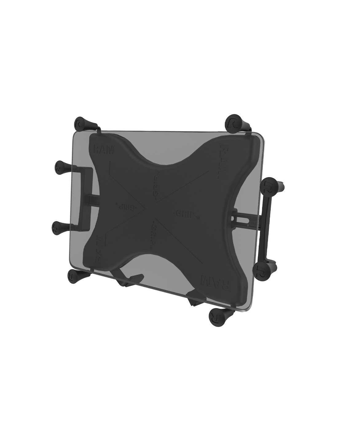 The RAM X-Grip universal holder for 9"-11" tablets features an 'X' design that expands and contracts to provide a perfect fit for your device even if it's in a case. Included are easy access grip knobs located on the back of the cradle for quick release of your tablet. No matter what double socket arm and mounting base you pair the RAM X-Grip with, RAM ball and socket technology allows for near-infinite adjustability to achieve the ideal viewing angle while also extending the life of your phone by providing shock and vibration damping. This version of the RAM X-Grip holder is compatible with tablets that will fit the dimensions listed below. It is important to verify the dimensions of device with its case, sleeve, or skin when determining the overall size.