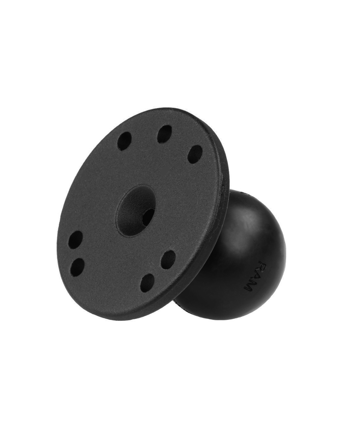 The RAM-202U consists of a 1.5" C size rubber ball connected to a 2.5" diameter round plate. This mounting component includes pre-drilled holes using the universal AMPS hole pattern.