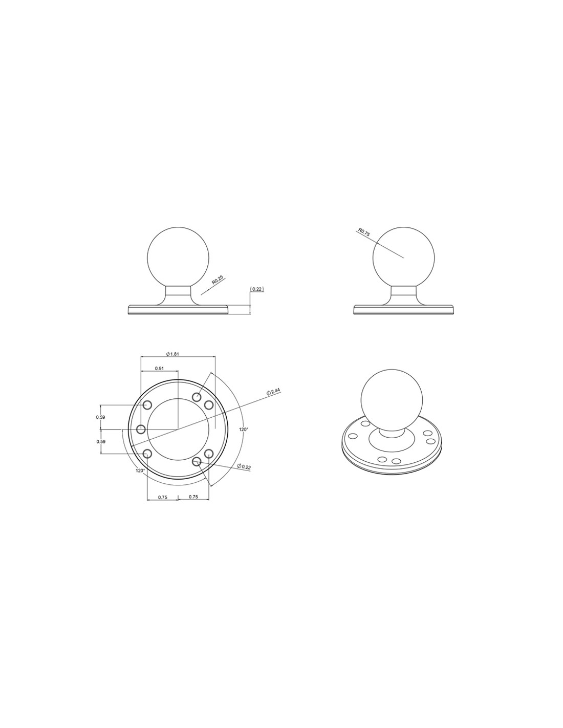 RAM® Round Plate with Ball - C Size