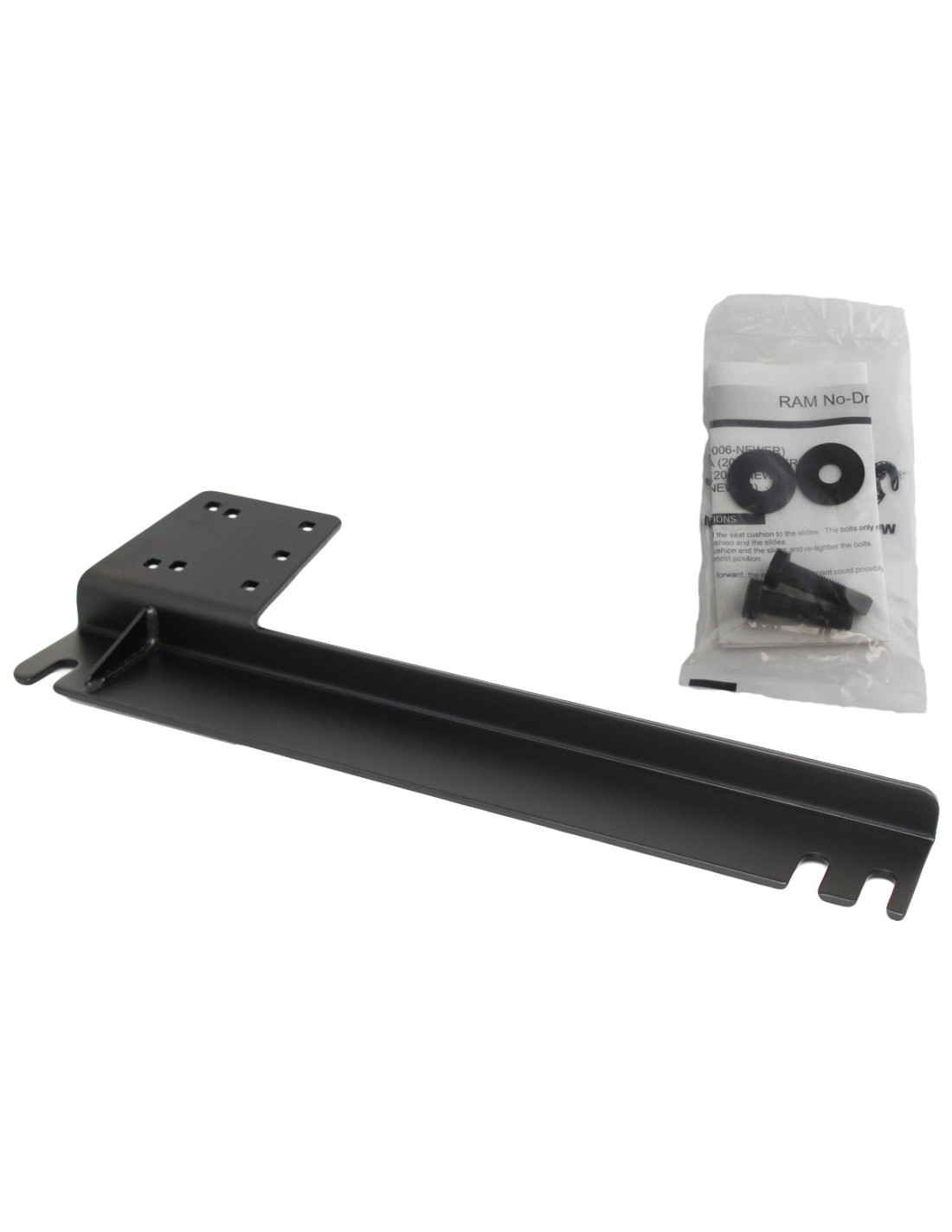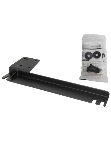 The RAM No-Drill laptop mounting base features a heavy-duty steel mounting base custom designed to fit this vehicle perfectly. Using the passenger side seat rail bolts as attachment points, existing hardware is used to secure the laptop mount base in the vehicle.