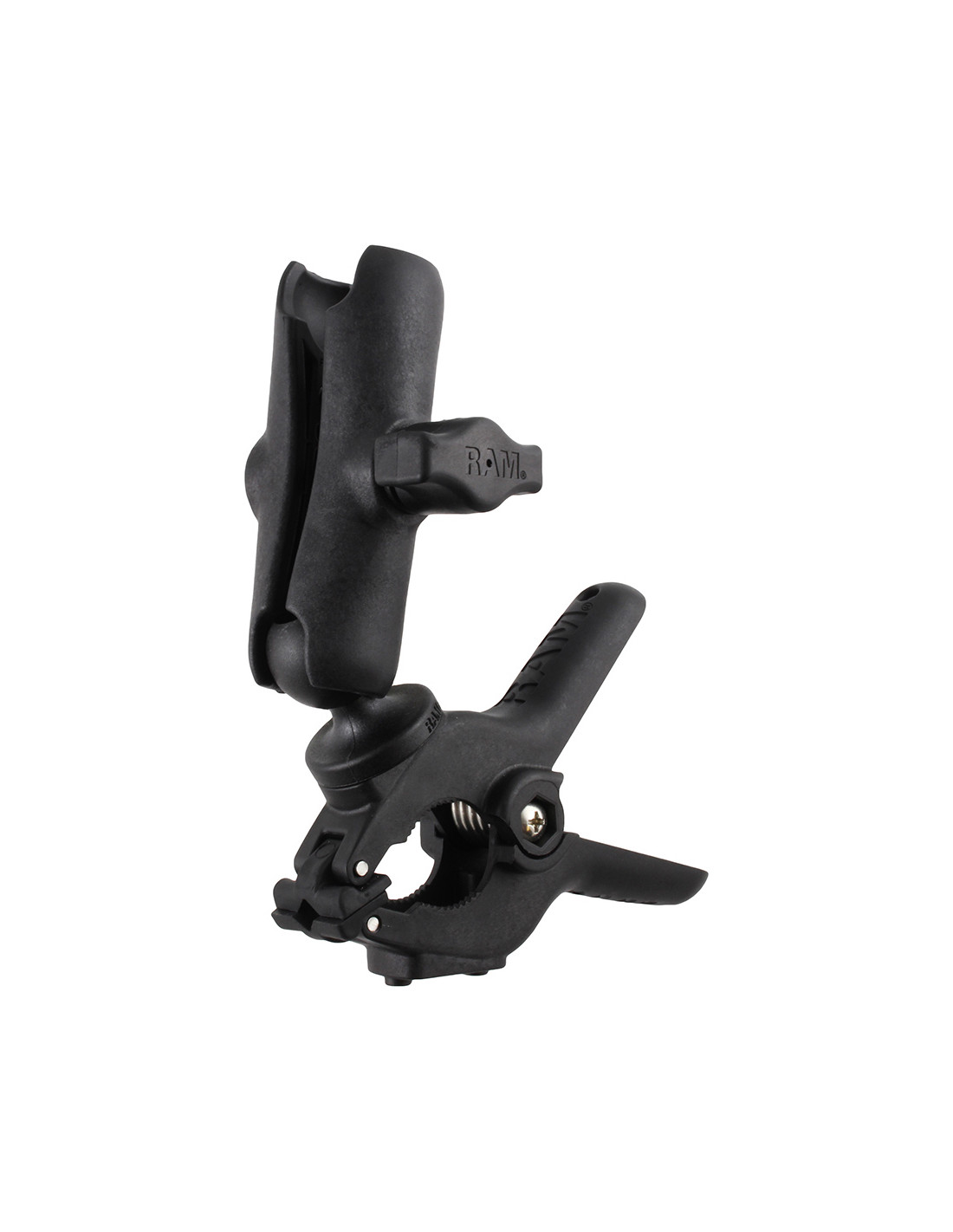 The RAP-B-397-2-201U consists of the RAM Tough-Clamp clamping base and 1" ball compatible STANDARD length double socket arm. The RAM Tough-Clamp includes a 1" ball which can be used to mount a variety of products utilizing RAM's vast selection of mounting solutions. Attach your GoPro Camera, Smartphone, RAM AQUA BOX Pro or similar lightweight device on almost any flat surfaces and square rails.