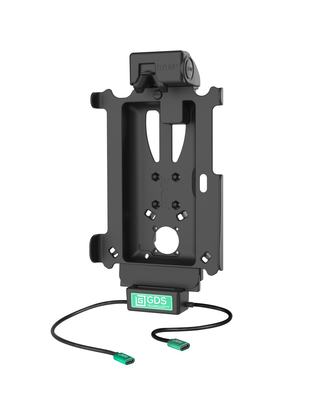 The GDS Tough-Dock + USB-C Data for Tab Active5 Pro & 4 Pro (RAM-GDS-DOCK-SAM54NC-CU) is a vehicle dock designed to support the Samsung Galaxy Tab Active5 Pro, Tab Active4 Pro, and Tab Active Pro wrapped in an IntelliSkin Next Gen protective sleeve. Using a USB Type-C power connector, the GDS Tough-Dock supports high speed charging capabilities required by the Samsung devices. It also features an additional USB Type-C connector to support a single peripheral device. The USB Type-C connection work seamlessly with RAM RSM or 3rd party microphones to enable push-to-talk (PTT) over-cellular capabilities. The GDS Tough-Dock is designed with housing that accommodates the RAM NFC Extender, is compatible with RAM ball and socket systems, and requires a 4-hole AMPS pattern ball base. The GDS Tough-Dock is backed by a 3-year warranty. Always Protected. Always Connected.
