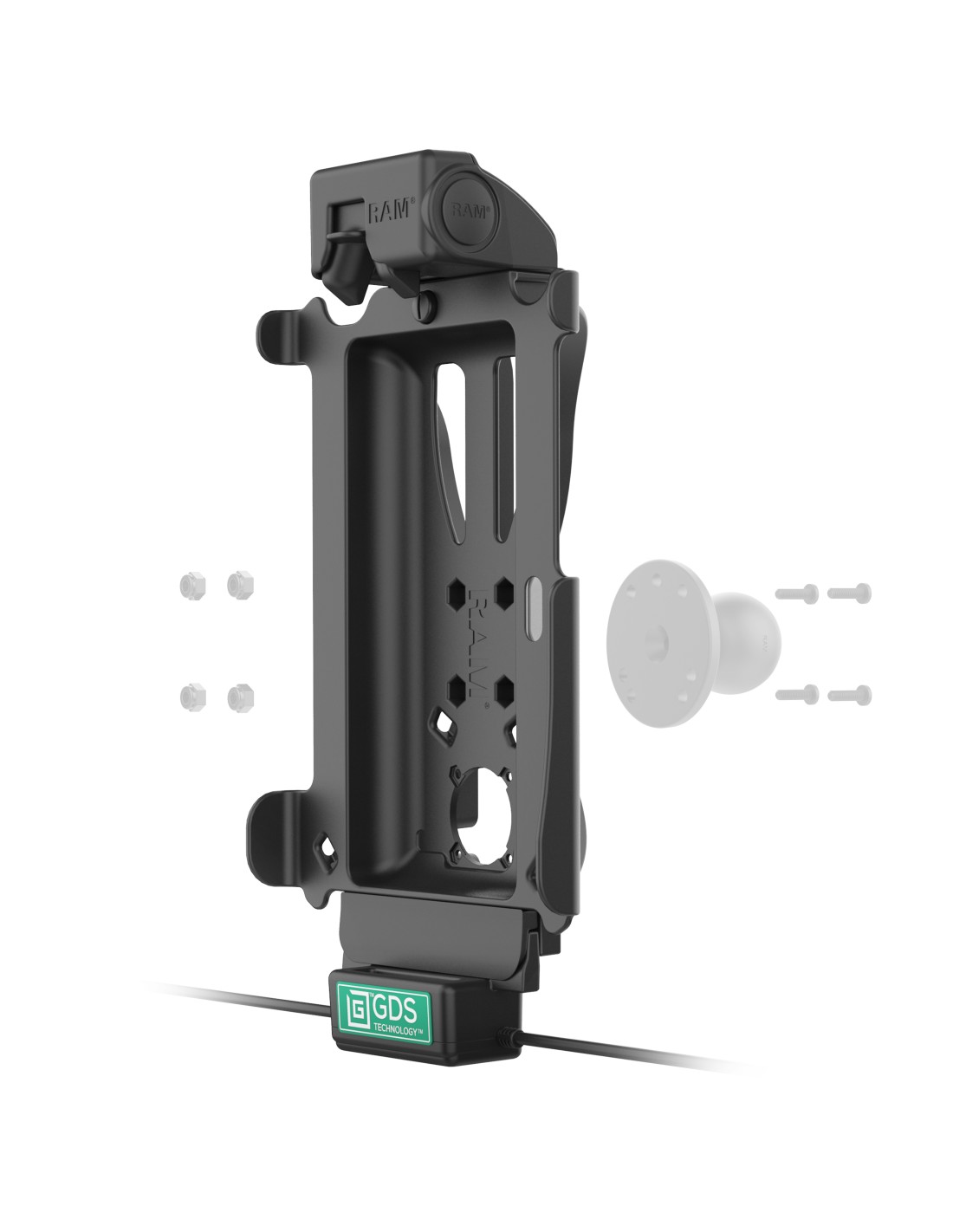 This GDS Tough-Dock vehicle dock (RAM-GDS-DOCK-SAM54NCDU) is designed to support the Samsung Galaxy Tab Active5 Pro and Tab Active4 Pro in an IntelliSkin Next Gen protective sleeve for your fleet. While the dock uses a USB Type-C female power connector and integrated pogo pins to provide power to the device while docked, the GDS Tough-Dock also includes one USB Type-A connector to support one peripheral add-on such as a keyboard, printer, scanner and more. The GDS Tough-Dock is designed with housing that accommodates the RAM NFC Extender, is compatible with RAM ball and socket systems, and requires a 4-hole AMPS pattern ball base. The GDS Tough-Dock is backed by a 3-year warranty. Always Protected. Always Connected.