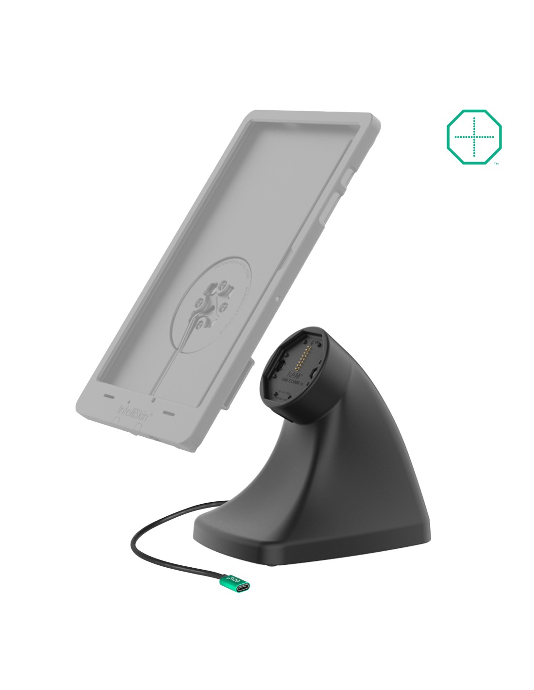 The GDS Uni-Conn Powered Kiosk Dock with USB-C (RAM-GDS-DOCK-D10K-C) is a free-standing, powered dock for devices enclosed in an IntelliSkin Thin-Case with Rear Pogo Pads. Easily dock and undock your device with the assistance of the magnetic attachment mechanism. Power is provided to the pogo pins integrated into the GDS Uni-Conn adapter via USB-C connection. This dock features a weighted base and rubber pads that provide theft deterrence and prevent it from sliding around on surfaces. One Dock to Connect Them All Always Protected. Always Connected.