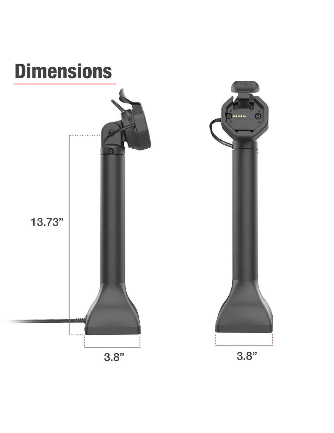 - 14" pedestal dock for devices enclosed in an IntelliSkin® Thin-CaseT with Rear Pogo Pads