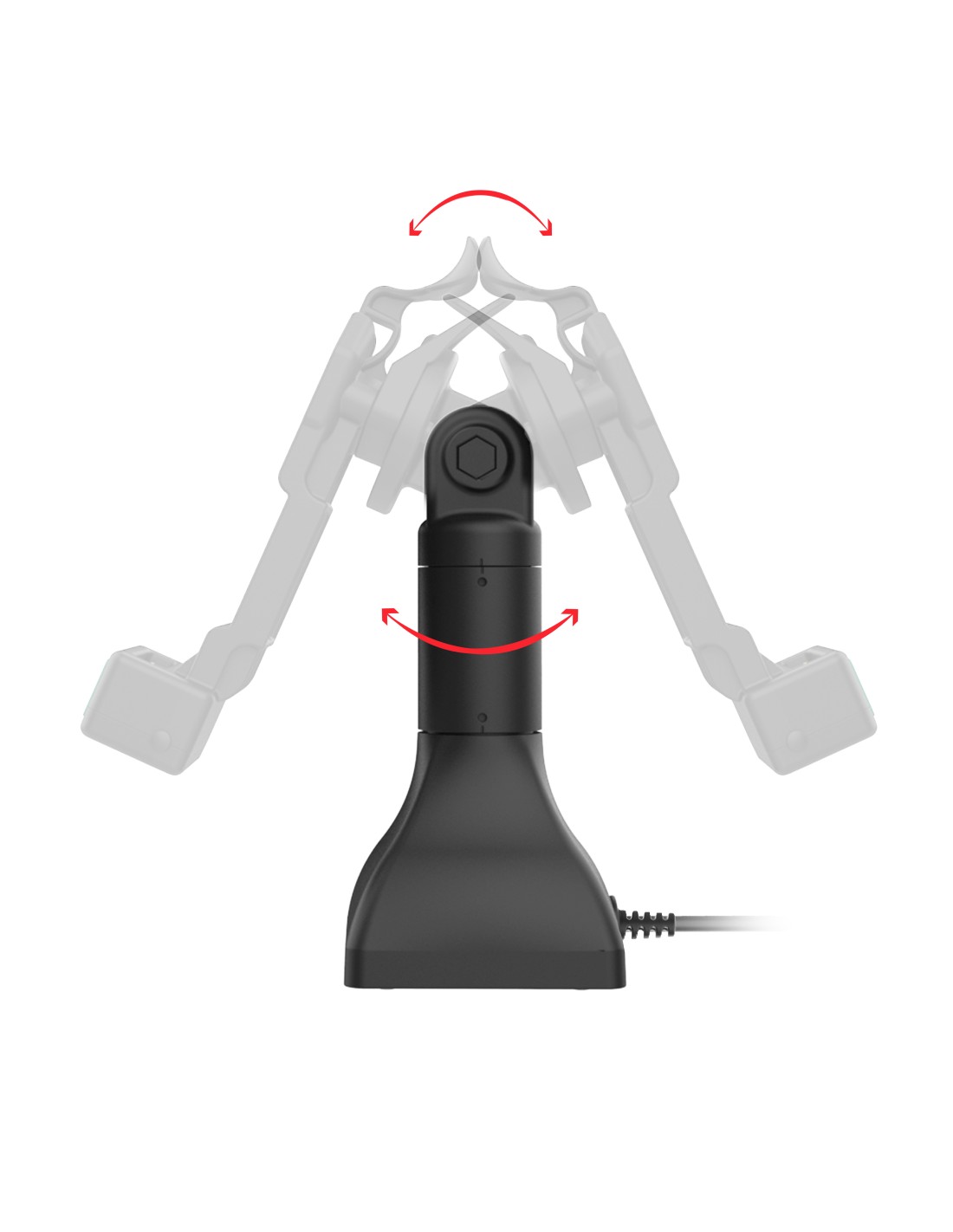 - Dock swivels 180 degrees and enables connected devices to tilt 180 degrees