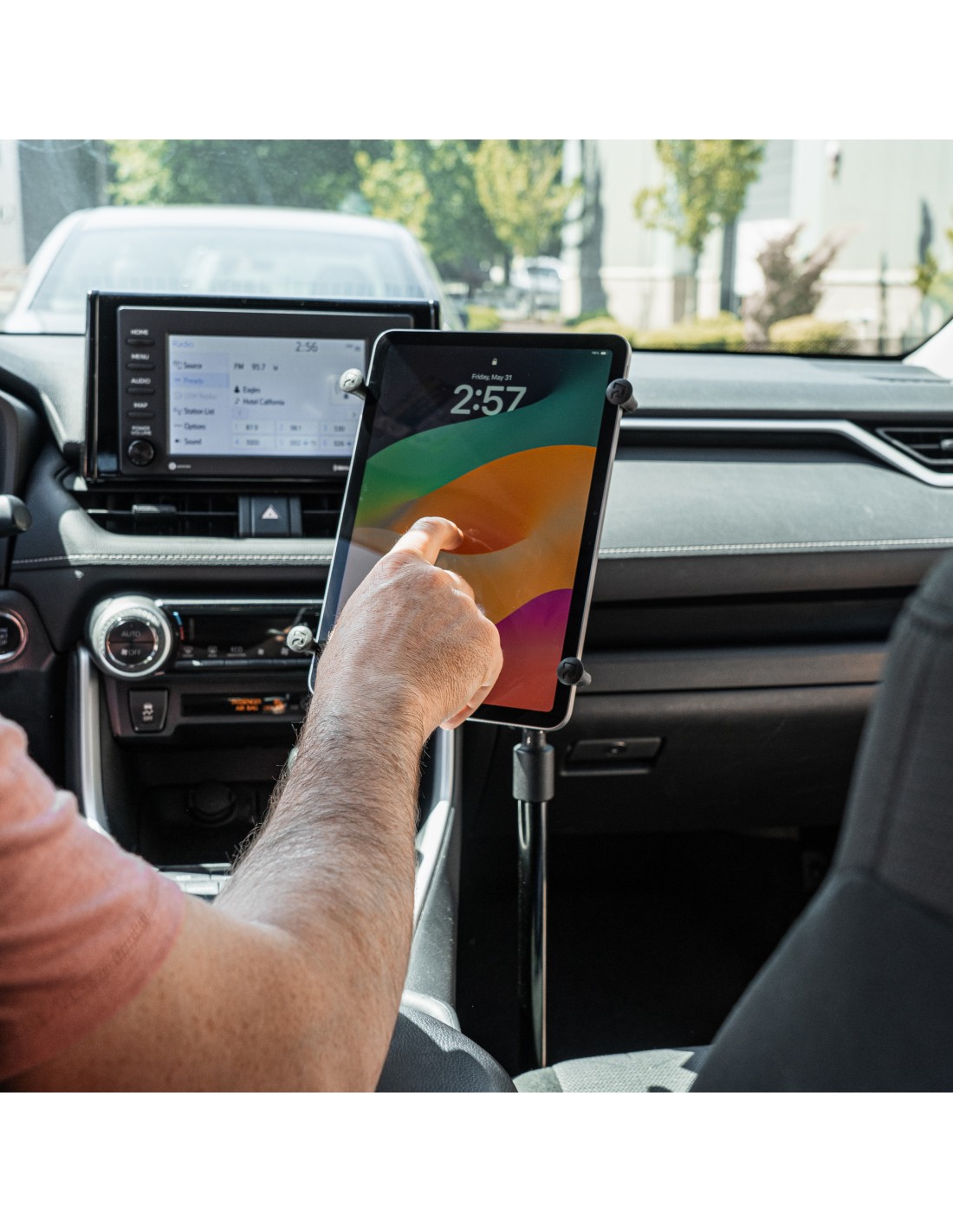 The RAM Pod HD 24" Vehicle Mount with RAM X-Grip for 9"-11" Tablets (RAM-316-HD-UN9U) features the RAM X-Grip Universal Holder for 9"-11" Tablets and the RAM Pod HD Vehicle Mount with 24" Aluminum Rod. The RAM X-Grip Universal Holder for 9"-11" tablets features an 'X' design that expands and contracts to provide a perfect fit for your device even if it's in a case. Easy-to-access grip knobs located on the back of the holder enable quick release of your tablet and the RAM ball and socket technology allows for near-infinite adjustability to achieve the ideal viewing angle. The included RAM Pod HD Vehicle Mount with 24" Aluminum Rod blends the best of versatility, strength, and installation ease; the RAM Pod HD is a workhorse for fleet and serious consumers alike. Compatible with a wide range of vehicles and simple to install, the RAM Pod HD is an ideal solution for mounting tablets. Requiring minimal space in the vehicle cab, the pipe can be removed quickly without the use of tools. The versatility of the RAM Pod HD makes it an ideal solution for mixed vehicle fleets, consumer vehicles of all types, and other applications which require a robust mounting platform for your tablet.