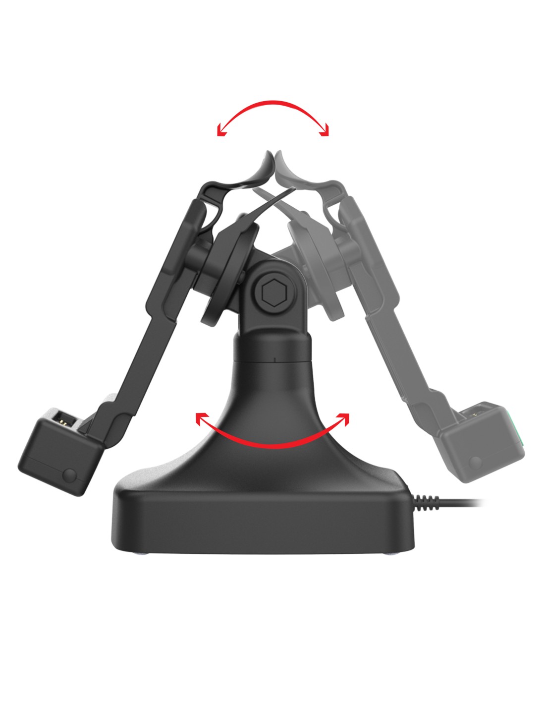 - Dock swivels 180 degrees and enables connected devices to tilt 180 degrees
