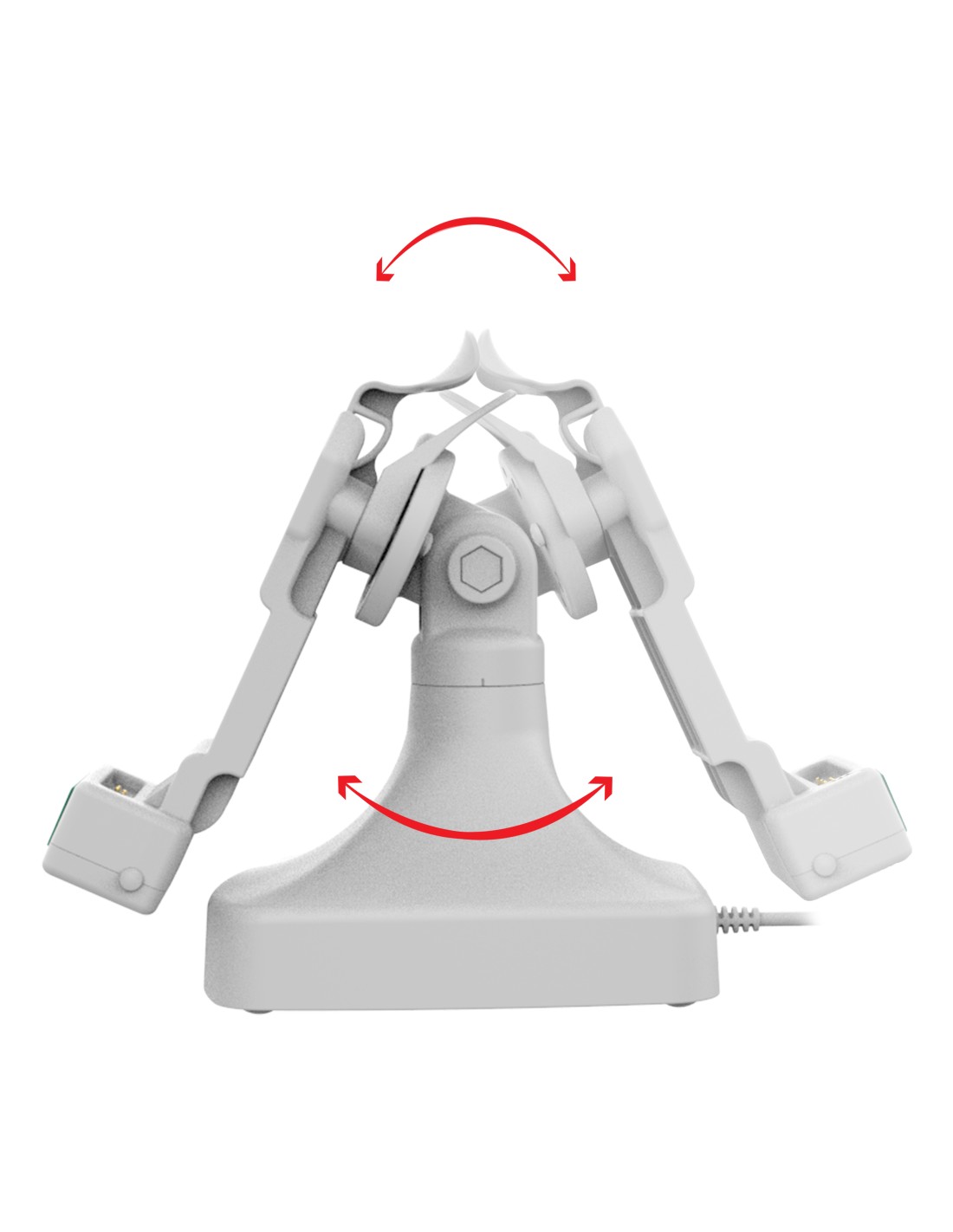 - Dock swivels 180 degrees and enables connected devices to tilt 180 degrees
