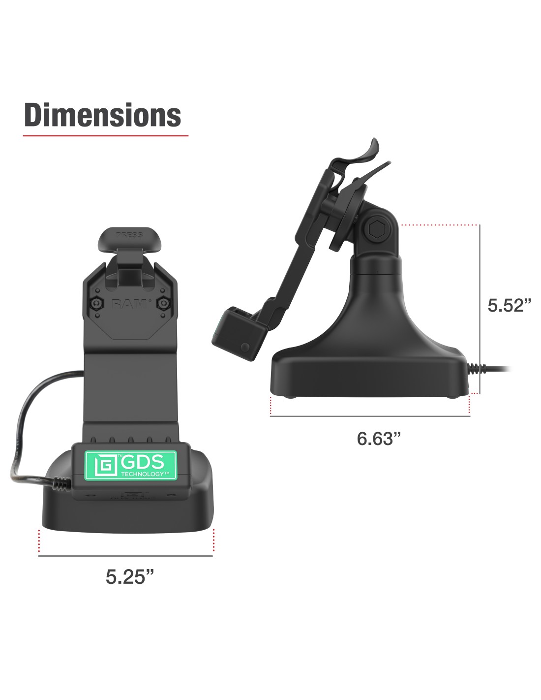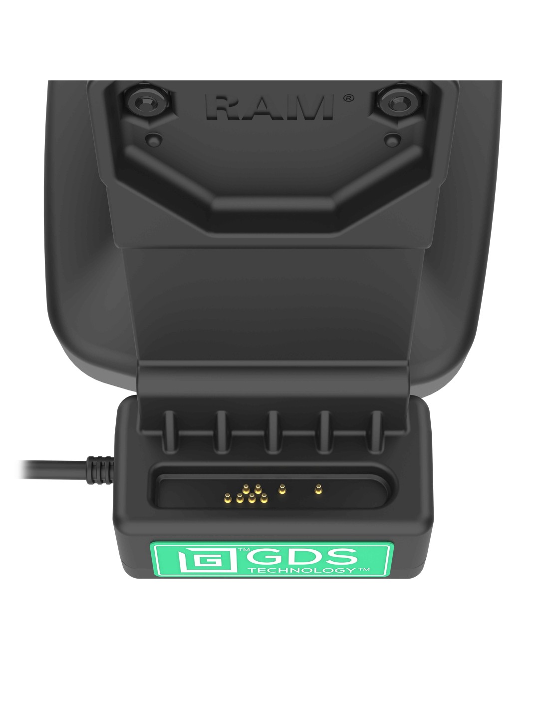 The GDS Uni-Conn Tilt & Swivel Dock with PoE + Data (RAM-GDS-DOCK-D14-U1E-2A) is a free-standing, powered dock for devices enclosed in an IntelliSkin Next Gen, IntelliSkin Hard Case, or standard IntelliSkin Thin-Case with a GDS Uni-Conn adapter. This solution can swivel 180 degrees and allows devices to tilt 180 degrees, which is ideal for customer-centric industries like retail, hospitality, food service, and more. Power over Ethernet (PoE) is provided to the pogo pins integrated into the GDS Uni-Conn dock via RJ45 connection while the two USB-A ports on the back support up to two input devices like keyboard, mouse, scanner gun, and more. This dock features a weighted base and rubber pads that provide theft deterrence and prevent it from sliding around on surfaces. One Dock to Connect Them All Always Protected. Always Connected.