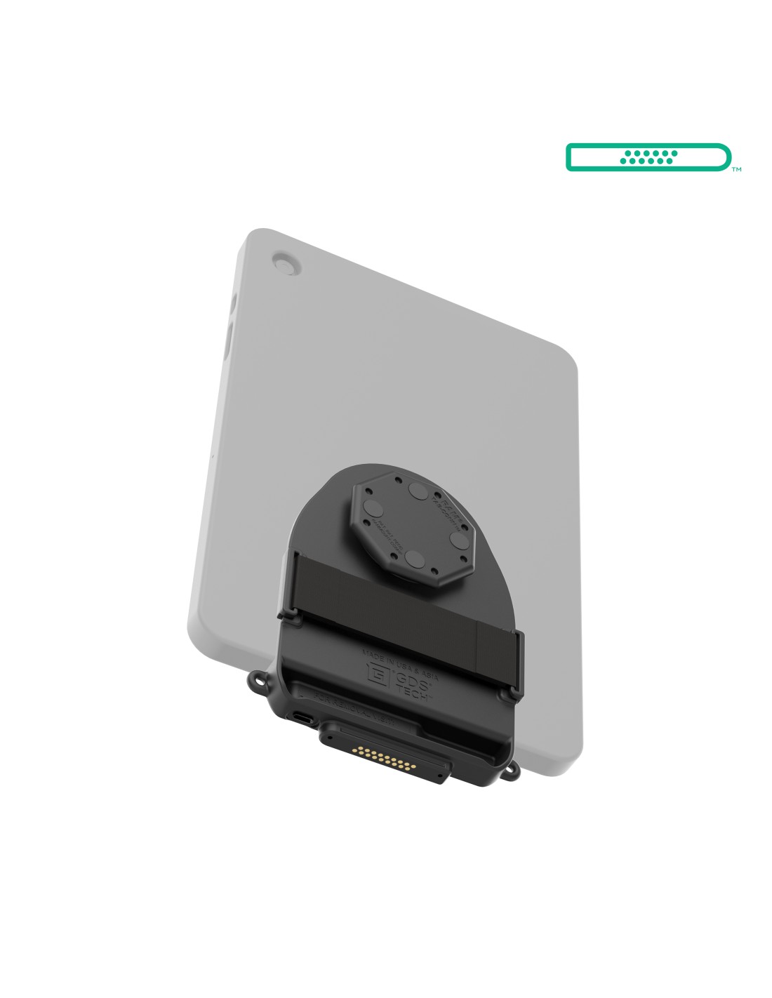 - Hard plastic, adhesive GDS® Uni-ConnT adapter with Distinctive D ShapeT connector for tablets enclosed in an Otterbox Defender case