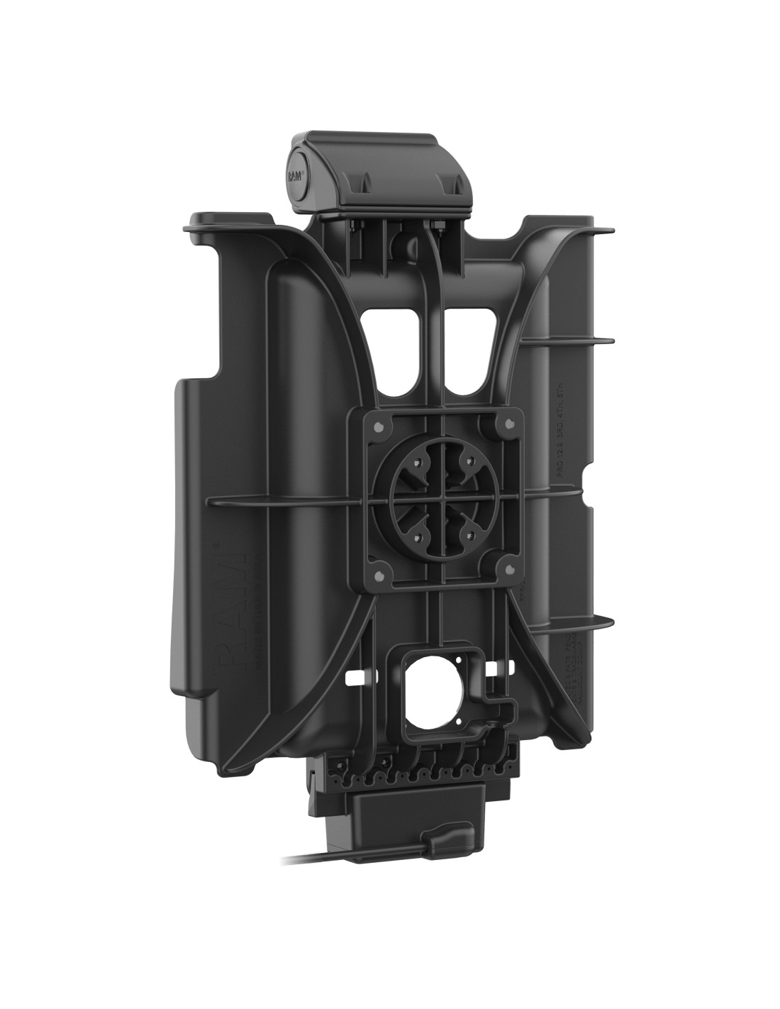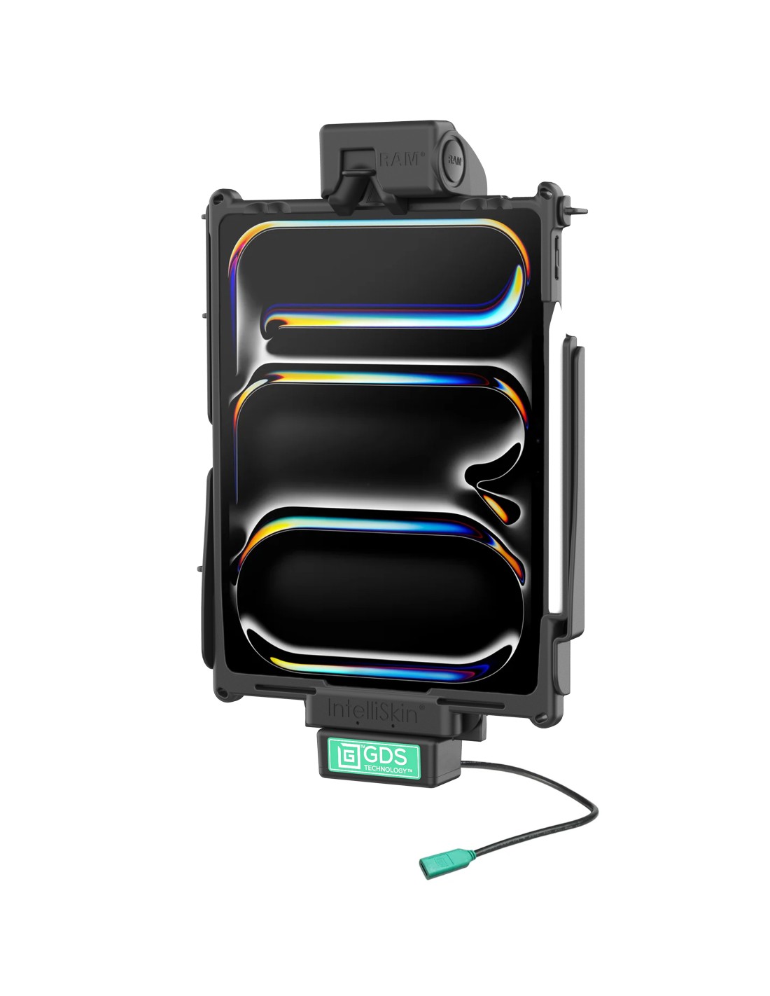 The GDS Tough-Dock with USB-C 3.1 for iPad Pro 12.9, Pro 13 & Air 13 (RAM-GDS-DOCK-AP37CU) is a form-fit vehicle dock designed to support the Apple iPad Pro 12.9, Pro 13 & Air 13 in an IntelliSkin Next Gen protective sleeve. This enterprise solution is ideal for fleets operating in rugged environments, the exoskeleton protecting the device from any jarring movements or accidental bumps. Using the integrated USB Type-C 3.1 connector and pogo pins to connect to the device's IntelliSkin, the GDS Tough-Dock supports high-speed charging capabilities while docked. This dock features a 4-hole AMPS pattern and 75mm VESA patterncomplete your mounting solution with a compatible ball adapter in the RAM ball and socket system. The GDS Tough-Dock is backed by a 3-year warranty. Always Protected. Always Connected.