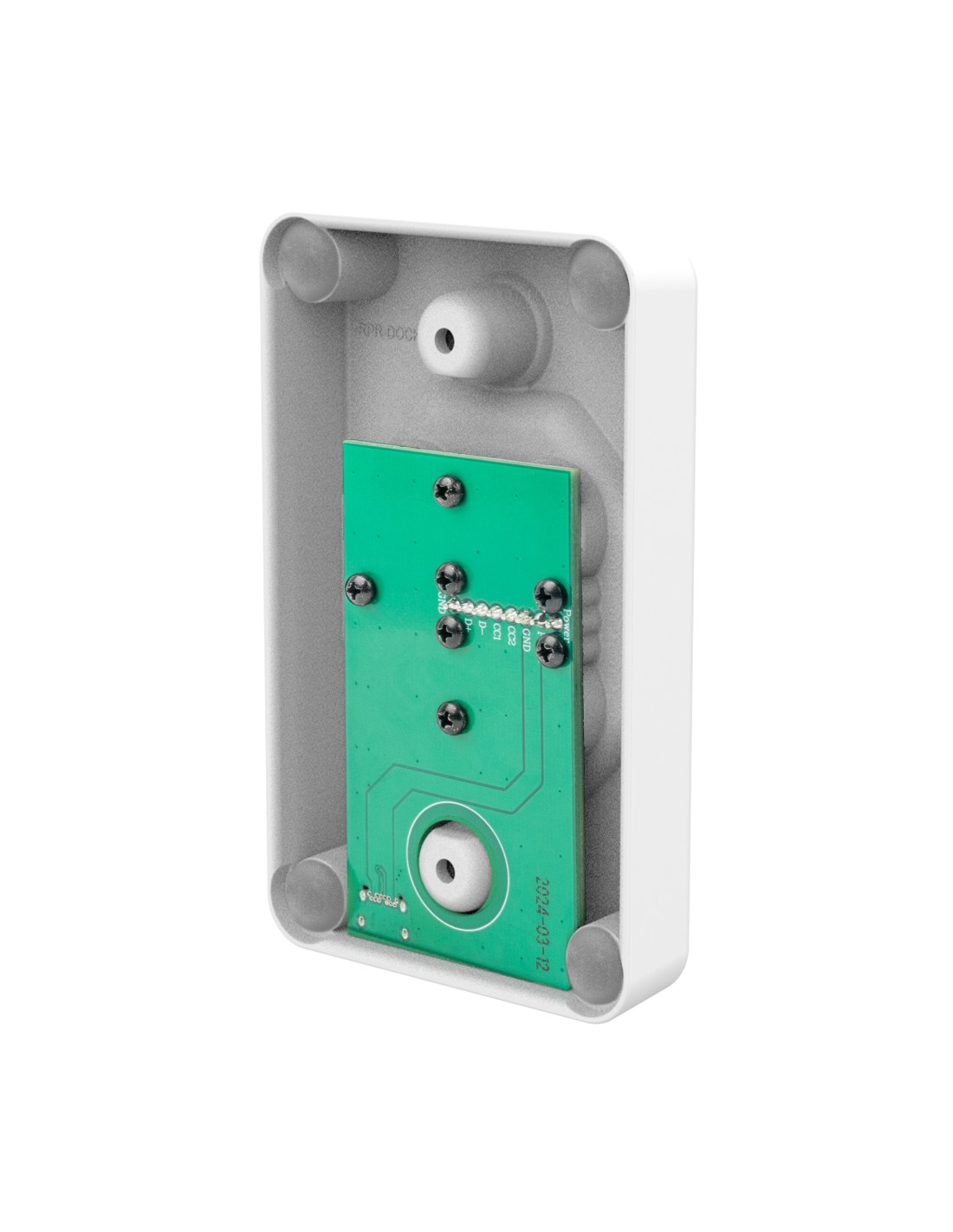 - Gray, low-profile, powered wall dock for devices enclosed in an IntelliSkin® Thin-CaseT with Rear Pogo Pads