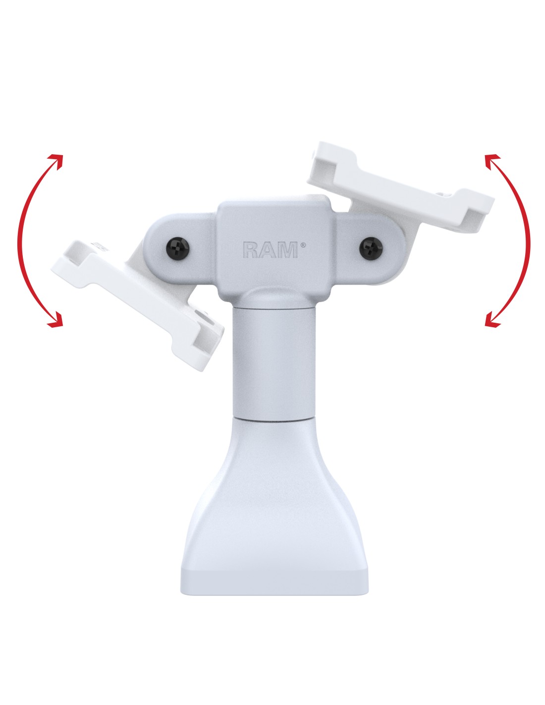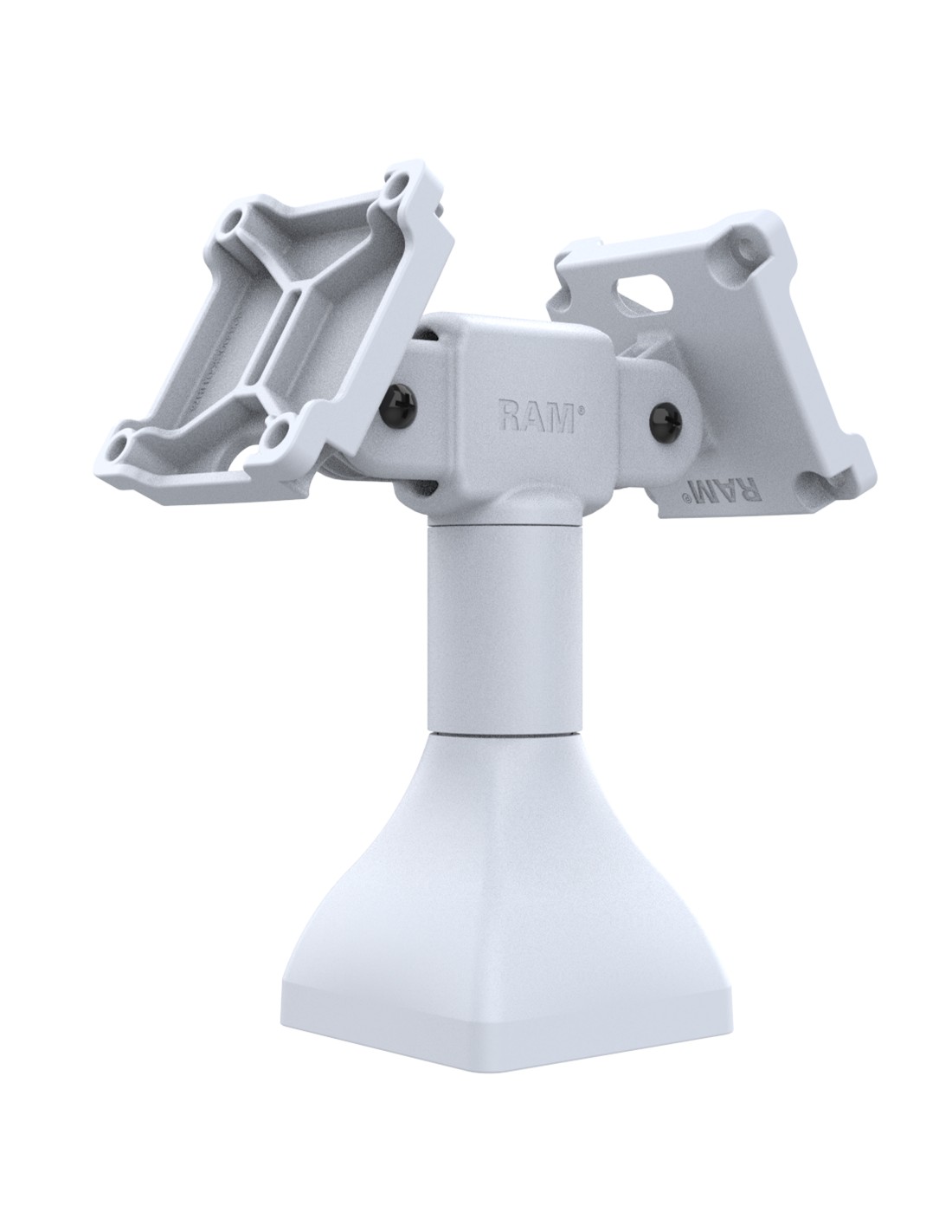 The RAM 7" Pedestal Mount with Dual 75mm VESA Adapters - Gray (RAP-D11H2-7-V75-GRY) provides a sturdy and streamlined way to mount two displays or devices back-to-back on a single pedestal. Each head includes a 75mm VESA plate with integrated cable management cutouts, allowing power and data cables to route neatly through the pedestal and out the base for a clean, professional workspace. With 180 tilt adjustment on each head, users can easily achieve optimal viewing angleswhether the setup is for shared workstations, control panels, or fleet monitoring environments. The drill-down base delivers a secure, fixed installation ideal for high-traffic or semi-permanent setups. Durable, adaptable, and built for precision alignment, this dual-mount solution brings both functionality and visual organization to any business space. Made in a light gray color, the mount blends seamlessly into clean, modern, and aesthetic environments where subtlety and professional appearance matter.