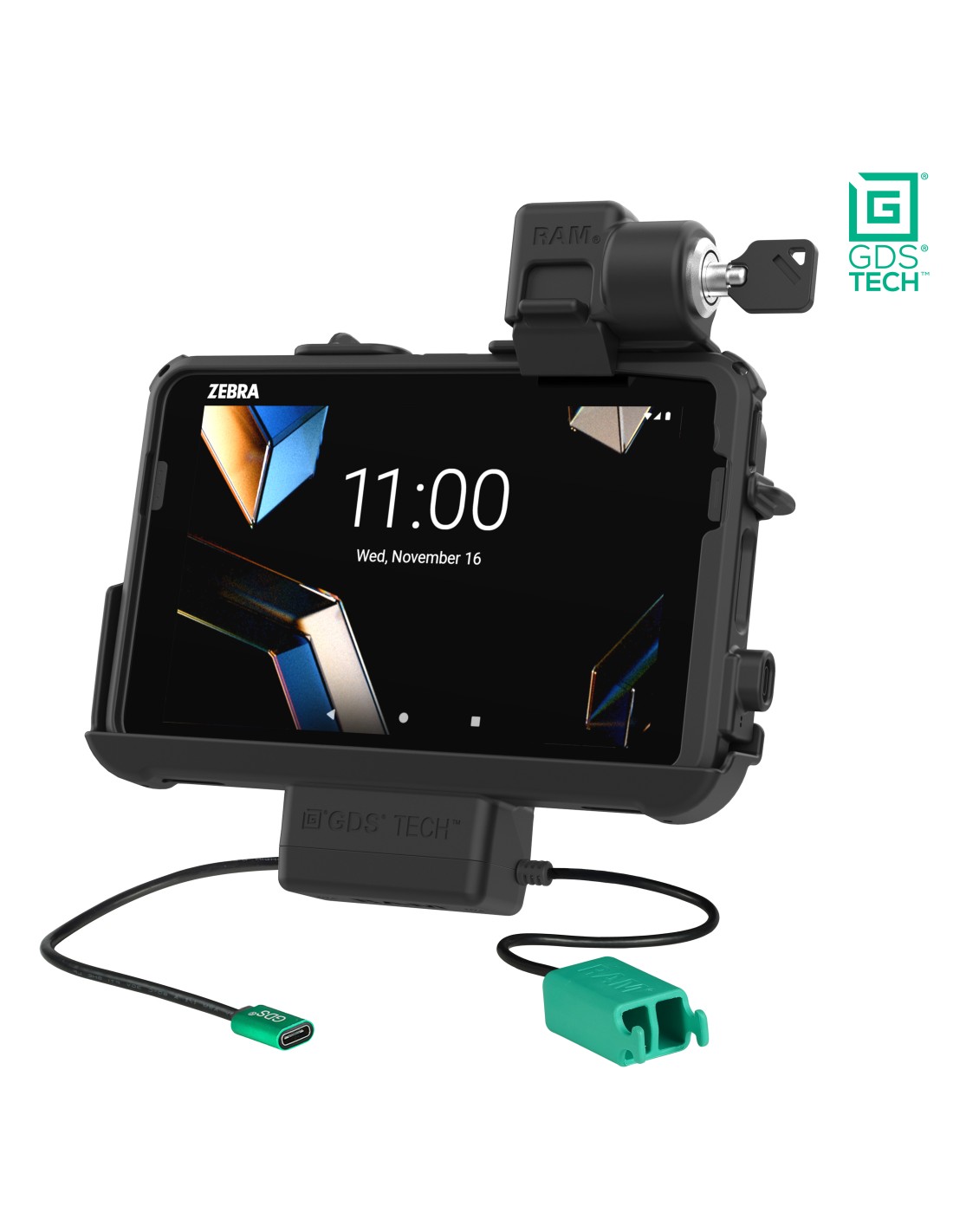 The Locking GDS Thin-Dock + Dual USB for Zebra ET401 8" with IntelliSkin (RAM-GDS-DOCKL-ZE46PD2U) delivers a low-profile, 2.44"-deep design reinforced with a durable metal plate, ideal for applications where space is limited. This vehicle dock is purpose-built for the Zebra ET401, ET40, and ET45 8" enterprise tablets when used with an IntelliSkin protective sleeve, ensuring a reliable, long-lasting mounting and charging solution. Engineered for efficiency, the Thin-Dock keeps your tablet powered through pogo pin contacts while docked, with power supplied via the docks USB Type-C connector. Connect up to two peripheral devices such as a mouse, keyboard, or printer using the peripheral dual USB-A connector. The design also maintains access to the tablets side scanning function, making it a strong fit for field service, warehousing, retail, transportation, and other data-capture environments. Because of its compact footprint, this dock does not support add-ons like the Zebra Expansion Back or PowerPack Battery. For mounting flexibility, the dock is compatible with both RAM C and D size 4-hole AMPS pattern bases, ideal for pairing with a double socket arm to complete your vehicle or workstation setup. This dock also features integrated attachment points for the RAM Vent-Temp, a temperature control accessory, and the RAM NFC Extender. Always Protected. Always Connected.