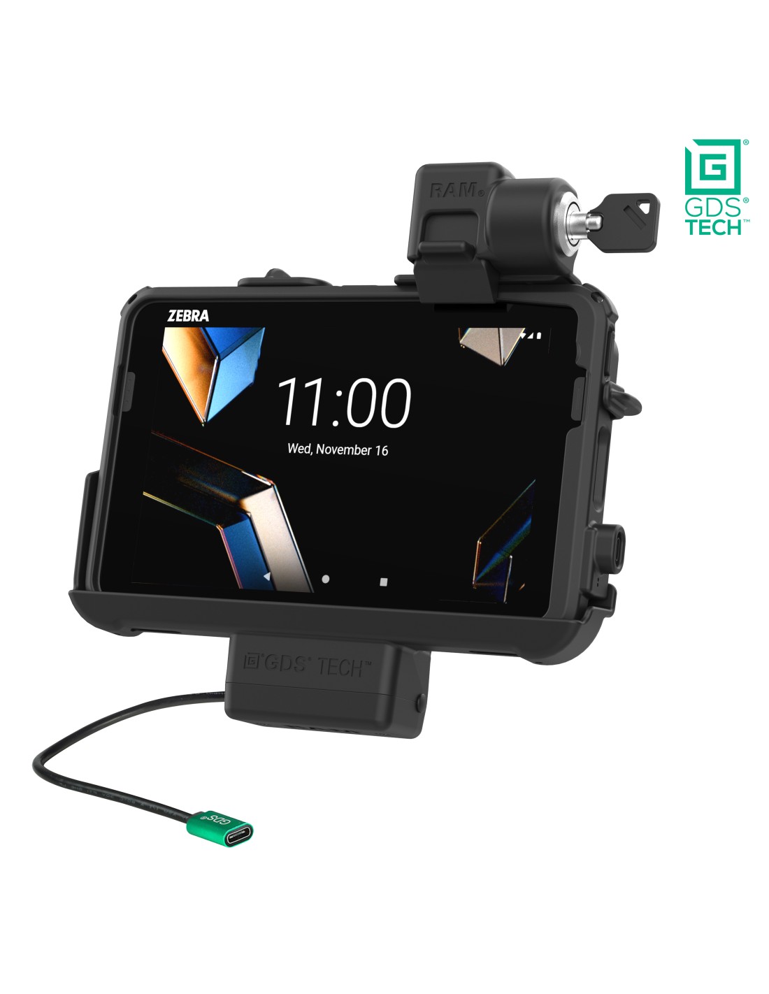 The Locking GDS Thin-Dock for Zebra ET401 & ET4x 8" with IntelliSkin (RAM-GDS-DOCKL-ZE46PU) delivers a low-profile, 2.44"-deep design reinforced with a durable metal plate, ideal for applications where space is limited. This vehicle dock is purpose-built for the Zebra ET401, ET40, and ET45 8" enterprise tablets when used with an IntelliSkin protective sleeve, ensuring a reliable, long-lasting mounting and charging solution. Engineered for efficiency, the Thin-Dock keeps your tablet powered through pogo pin contacts while docked, with power supplied via the docks USB Type-C connector. The design also maintains access to the tablets side scanning function, making it a strong fit for field service, warehousing, retail, transportation, and other data-capture environments. Because of its compact footprint, this dock does not support add-ons like the Zebra Expansion Back or PowerPack Battery. For mounting flexibility, the dock is compatible with both RAM C and D size 4-hole AMPS pattern bases, ideal for pairing with a double socket arm to complete your vehicle or workstation setup. This dock also features integrated attachment points for the RAM Vent-Temp, a temperature control accessory, and the RAM NFC Extender. Always Protected. Always Connected.